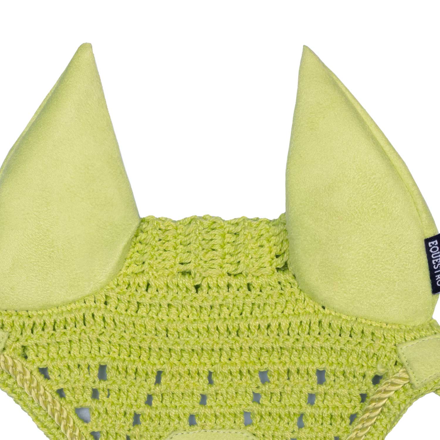 Sie ist gehäkelt und verfügt über weiche Baumwollohren, schöne Flechtdetails und ein Equestro-Logo. Dadurch sieht diese Miniatur-Ohrenhaube genauso aus wie das Original.