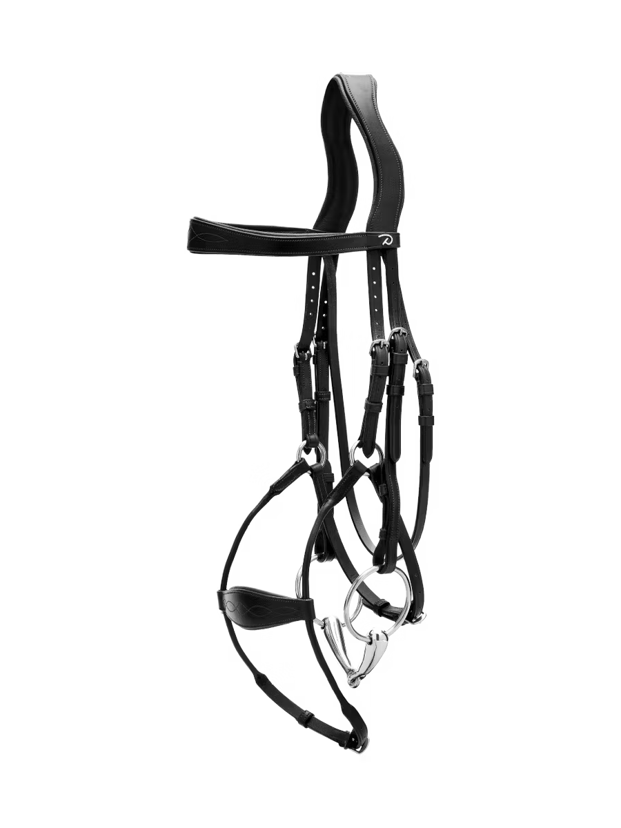Das S-förmige Genickstück entlastet gezielt den Bereich hinter den Ohren und ermöglicht mehr Bewegungsfreiheit sowie eine natürliche Kopfhaltung. Gefertigt aus hochwertigem Dy’on Leder überzeugt die Trense durch Langlebigkeit, Flexibilität und eine elegante Optik – ideal für Training und Turnier.
