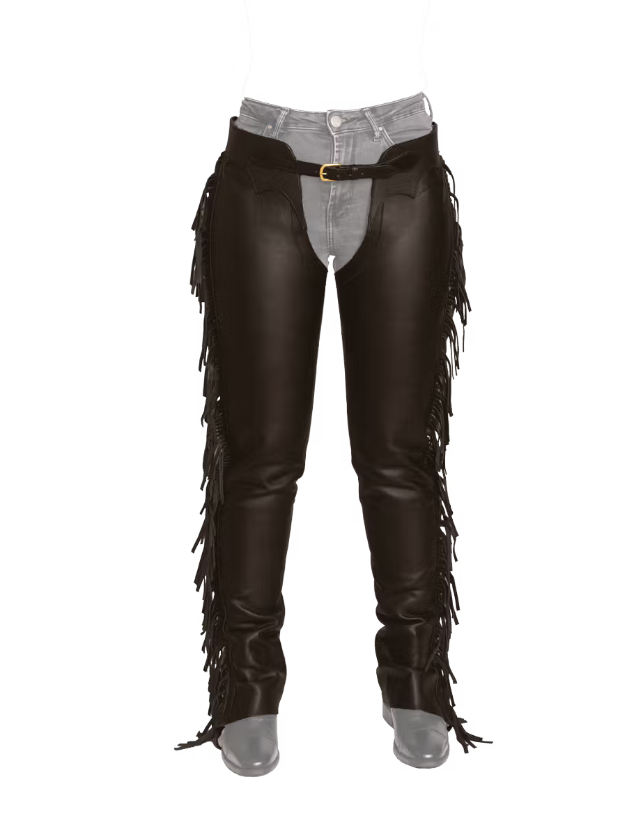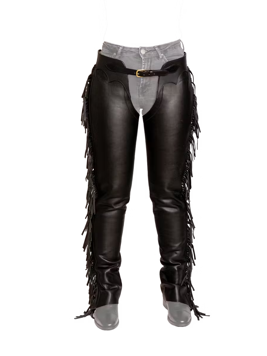 Dy'on Lange Chaps mit Fransen aus strapazierfähigem Kunstleder bieten eine pflegeleichte, wasserabweisende und stilvolle Lösung für Reiter, die Komfort, Funktionalität und modische Akzente gleichermaßen schätzen. Das flexible Material, die einfache Reinigung und der dekorative Fransenlook verbinden Alltagstauglichkeit mit einem Hauch Western-Style – ideal für tägliches Training und Stallarbeit.