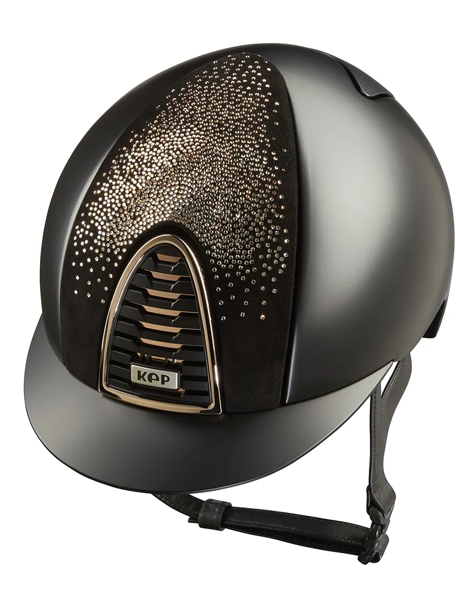 KEP Cromo 2.0 Nebula Textile helmet with Swarovski crystals Premium textile riding helmet with Swarovski crystal details black helmet bag visiser jockey cromo 2.0