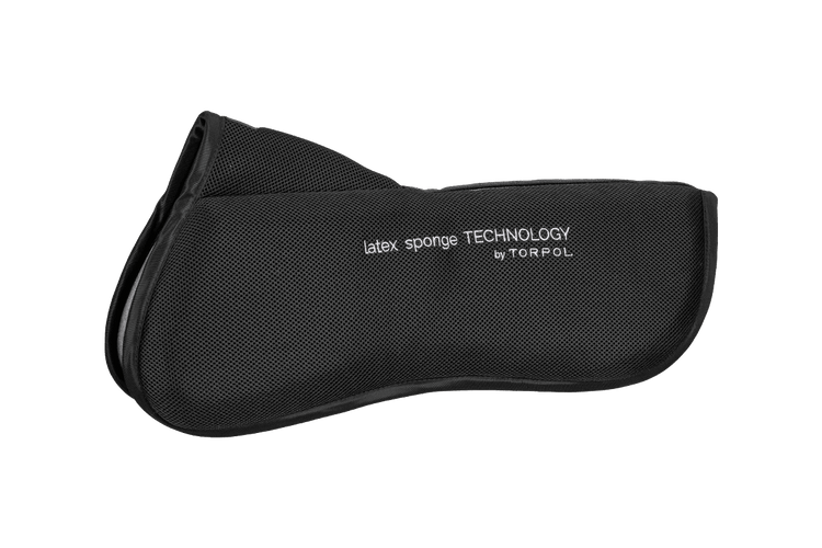 Torpol Classic Latex Sattelpad - Ein Sattelpad mit mehrschichtigem Schaumsystem, das den Schutz der Wirbelsäule sowohl für das Pferd als auch für den Reiter gewährleistet. Druckbedingte Beschwerden werden gleichmäßig verteilt und reduziert, um einen komfortableren Ritt zu ermöglichen. Das Free Neck System am Widerrist sorgt für eine optimale Passform und hervorragende Luftzirkulation. Die herausnehmbare Latex Sponge-Einlage ist von einem 3D-Mesh-Gewebe umgeben, das zusätzliche Strapazierfähigkeit und Atmungsaktivität bietet. Das Innenfutter ist atmungsaktiv und leitet Feuchtigkeit effizient ab, sodass das Pferd trocken und kühl bleibt.
