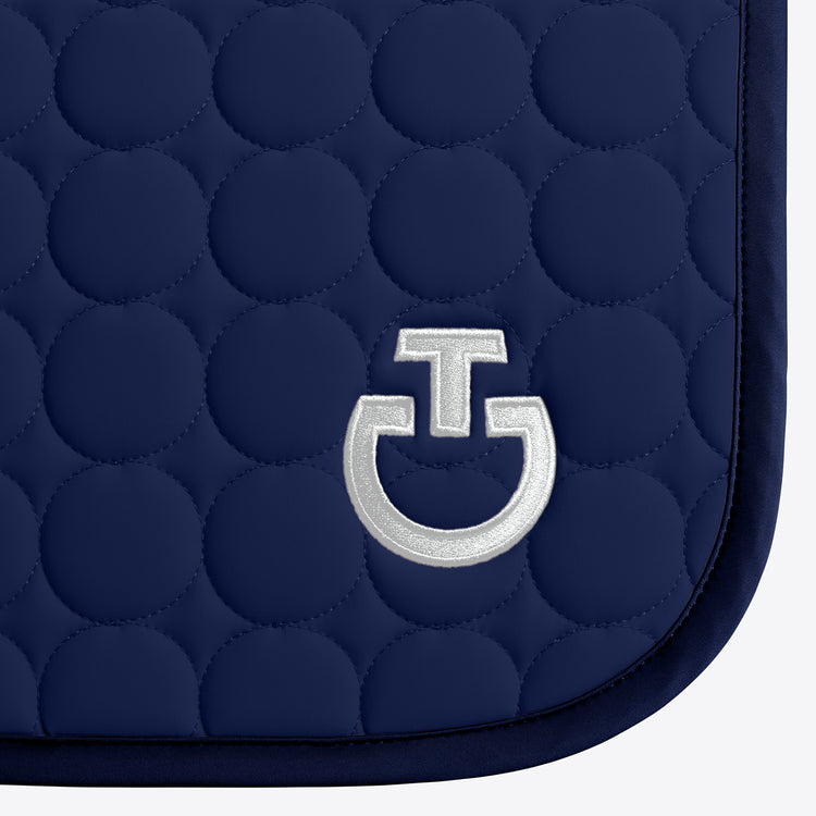 Cavalleria Toscana Rund gesteppte Springschabracke Hellblau – eine stilvolle Satteldecke mit einem einzigartigen runden Steppmuster für ein tolles Aussehen. Unglaublich weich und leicht, die Wabenstruktur auf der Unterseite der Satteldecke sorgt für guten Halt und leitet Feuchtigkeit effektiv ab, um den Rücken Ihres Pferdes trocken zu halten. Veredelt durch Ton-in-Ton-Kanten und ein weißes CT-Logo ist dies die perfekte Satteldecke für Training und Wettkampf.