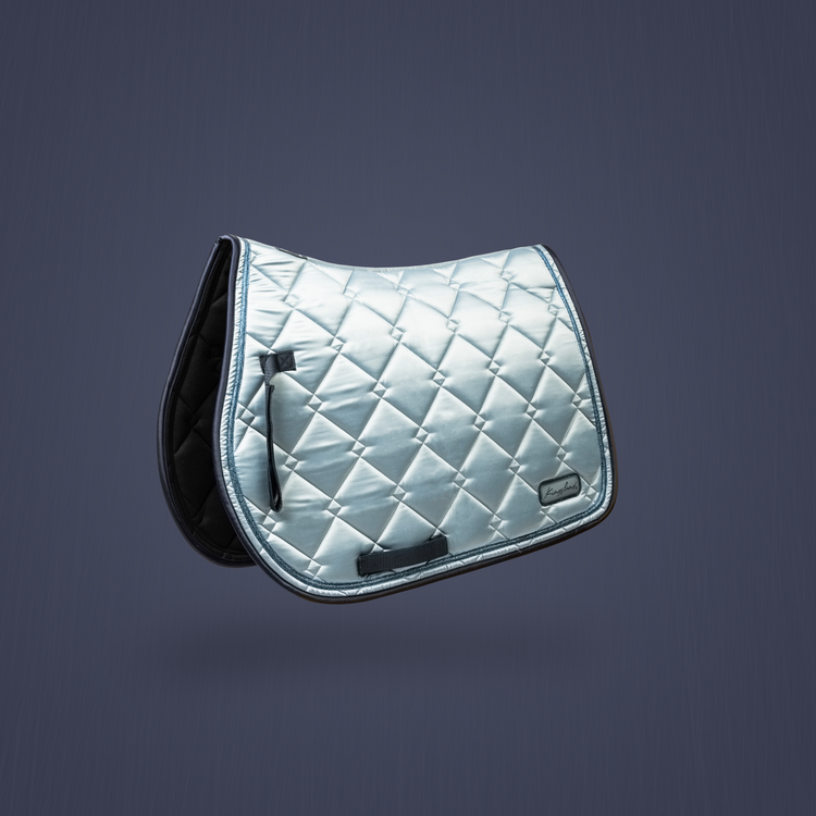 Kingsland KLTaliah Schabracke Satin - Sie reiten nicht nur auf der Show, oder? Sie investieren Ihr Herz und Ihre Seele darin. Erweitern Sie die Garderobe Ihres Pferdes und stellen Sie sicher, dass es den Respekt bekommt, den es verdient, mit unserer atemberaubenden KLtaliah-Schabracke. Sie besteht aus gestepptem, mattem Satin, der sich kühl anfühlt, und hat ein feuchtigkeitsableitendes Coolmax-Futter sowie Vorder- und Hüftgurte für eine hervorragende Passform. Unsere Designer vervollständigten den schicken Look mit einem Rautenquadrat-Steppmuster, Kontrastkantenpaspeln mit glänzender Lurexpaspelierung und zwei Kingsland-Logoaufnähern aus Gummi.