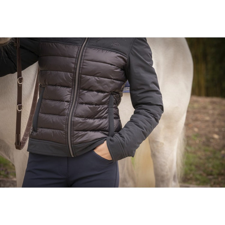 Penelope Edelweiss Jacke – eine leicht wattierte Jacke mit Strass-Logo auf der Brust. Diese Steppjacke besteht aus zwei verschiedenen Stoffen. Der Körper ist mit einer Füllung aus 100 % Polyester gepolstert und die Arme bestehen aus einem Softshell-ähnlichen Material. Das Kristalllogo auf der Brust verleiht dieser schlichten Jacke eine sehr feminine Note. Es ist ein Muss für den Frühling und Herbst!
