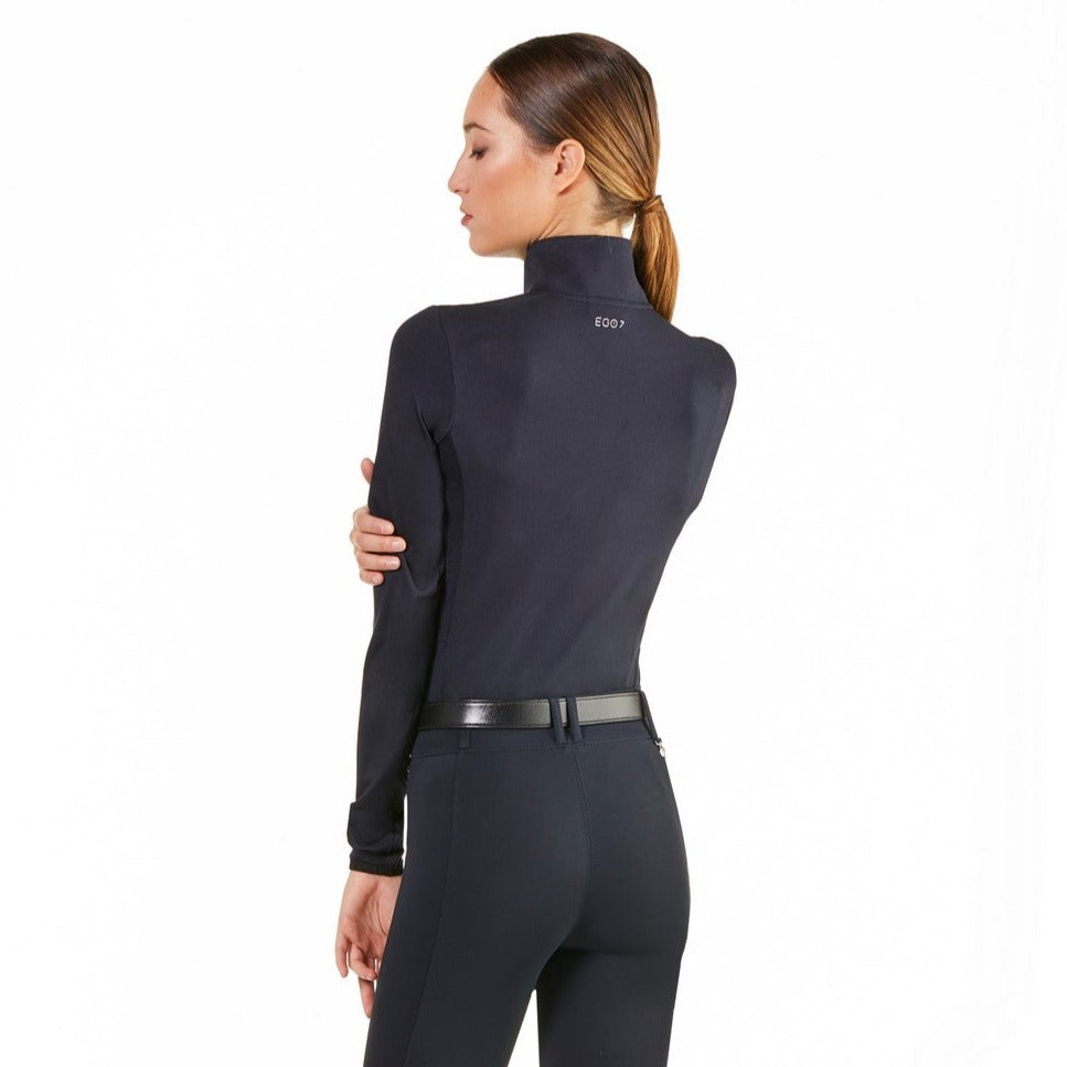 Ego7 Tita Damen Langarm Trainingsshirt - Dieses Hochleistungstechnik-Shirt verfügt über einen Stehkragen und einen Viertelreißverschluss. Dieses Langarm-Baselayer besteht aus superleichtem und atmungsaktivem Material, das speziell für Outdoor-Aktivitäten entwickelt wurde. Der Stoff fühlt sich seidig und frisch an. Zusätzliche netzartige Einsätze unter den Armen sorgen für zusätzliche Belüftung. Perfekt zum Training oder nach dem Reiten, es verfügt über EGO7 Markendetails für eine modische Note. Geeignet für alle Jahreszeiten.