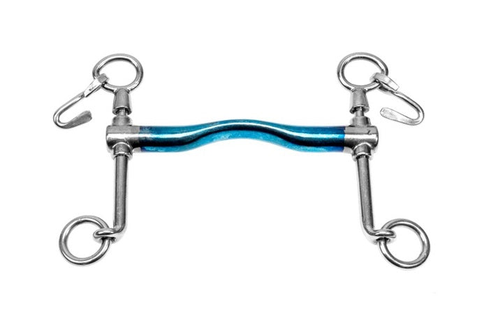 Die Sweet Iron Gebisse werden aus Stahl hergestellt und haben eine erkennbar blaue Farbe. Sweet Iron entwickelt durch den Kontakt mit (Luft)feuchtigkeit einen Oberflächenrost, der einen süßen Geschmack hat. Dadurch regt das Gebiss auf natürliche Weise die Speichelproduktion an, was dazu führt, dass das Pferd mehr kaut, mehr schäumt und so eine bessere Akzeptanz des Gebisses fördert.