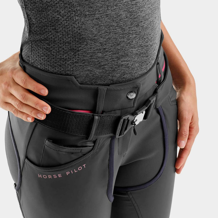 Horse Pilot X-Protech Reitpants - schützt den Reiter vor Regen und Kälte. Es besteht aus dehnbarem und wasserdichtem Material. Die Reißverschlüsse über die gesamte Beinlänge erleichtern das Anziehen. Die Reißverschlüsse sind ebenfalls wasserdicht, um effektiven Schutz bei Regen zu bieten.