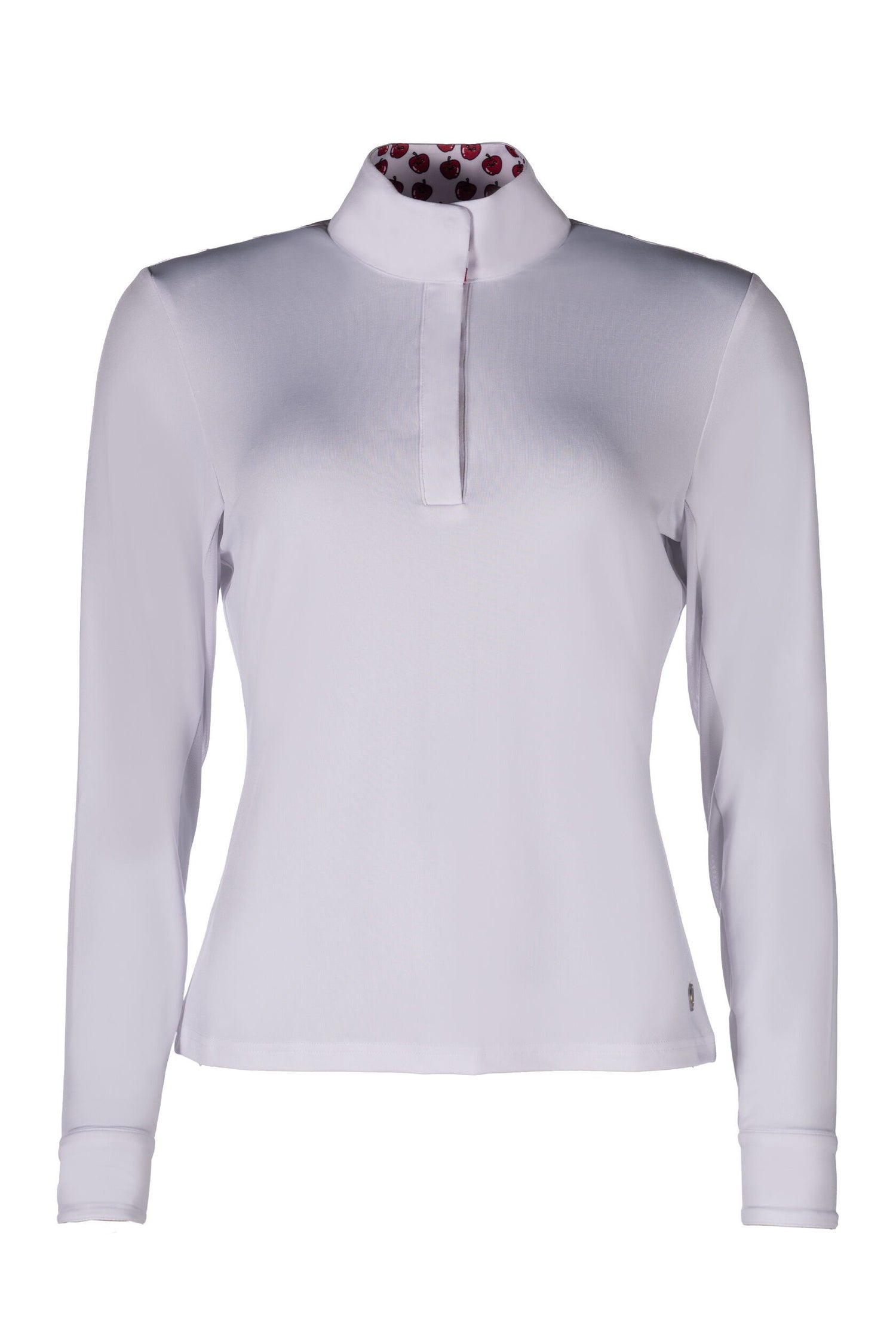 Mesh-Einsätze verbessern die Belüftung und machen das Shirt besonders angenehm zu tragen, auch an warmen Tagen oder unter dem Turnierjacket. Ein eleganter Stehkragen unterstreicht den klassischen Turnierlook, während ein dekorativer Kirsch-Print an der Krageninnenseite einen verspielten, stilvollen Akzent setzt. Mit seiner Kombination aus technischer Funktionalität und eleganten Details ist das Hunter Langarmshirt eine verlässliche Wahl für jedes Turnier.