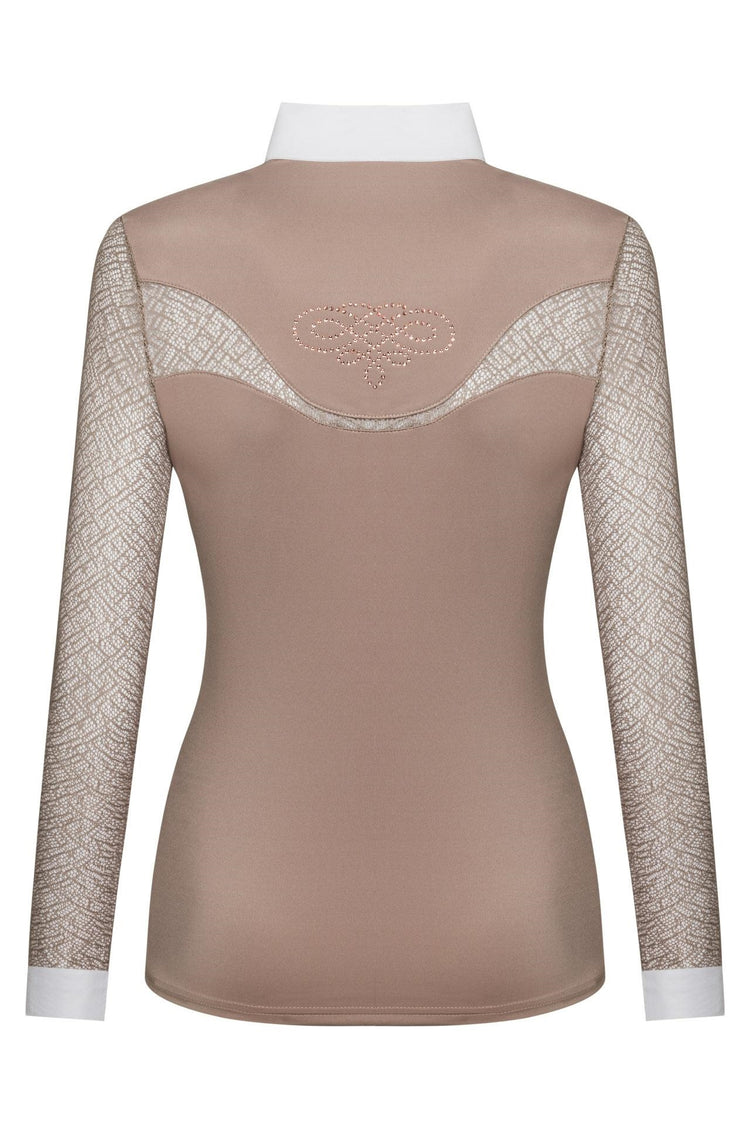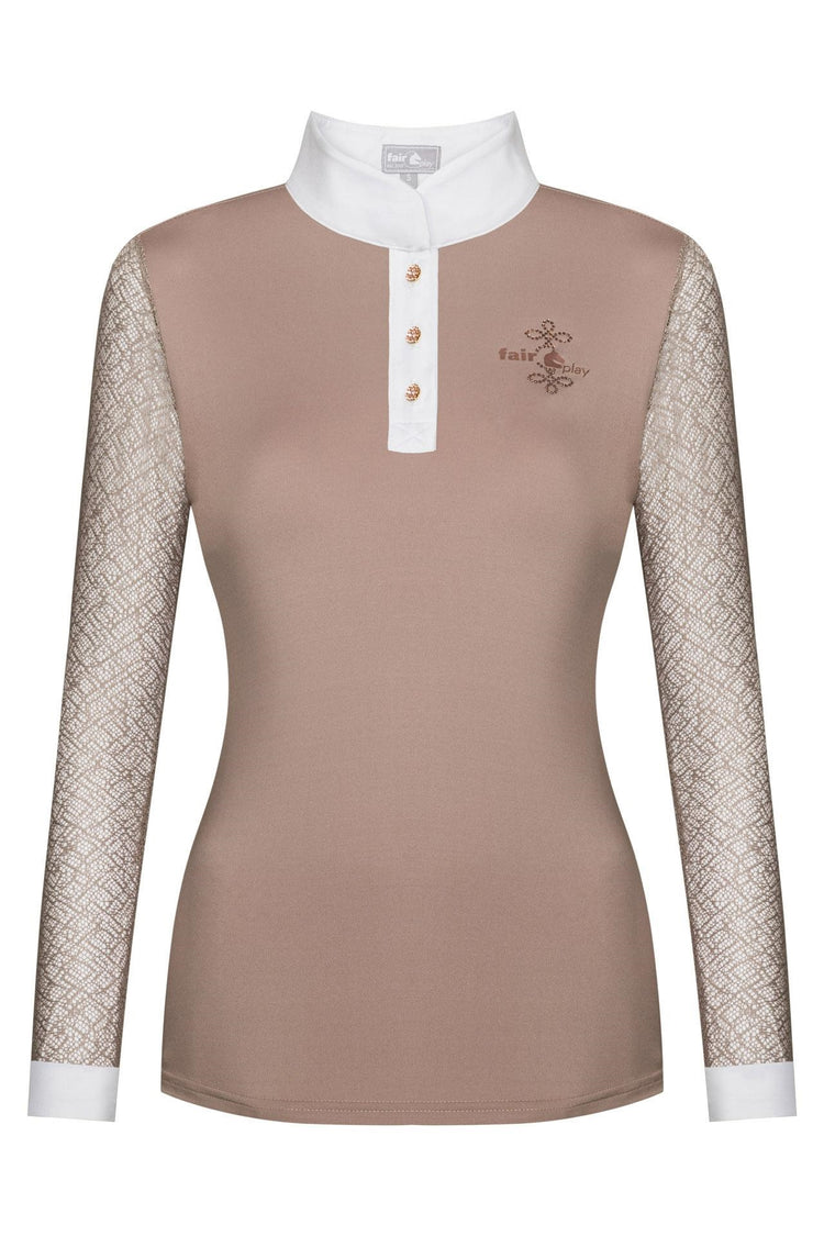 Turniershirt Cecile - wunderschön gestaltetes Turniershirt von Fairplay mit femininen Details für einen herrlichen Look. Das Shirt wird mit glamourösen Knöpfen verschlossen und die zarte Spitze und Kristall Details geben ihm ein sehr stilvolles Finish. Es ist aus dünnem, technischem Stoff gefertigt, der dank seiner Atmungsaktivität und des Feuchtigkeitstransports auch an warmen Tagen für ein angenehmes Tragegefühl sorgt.