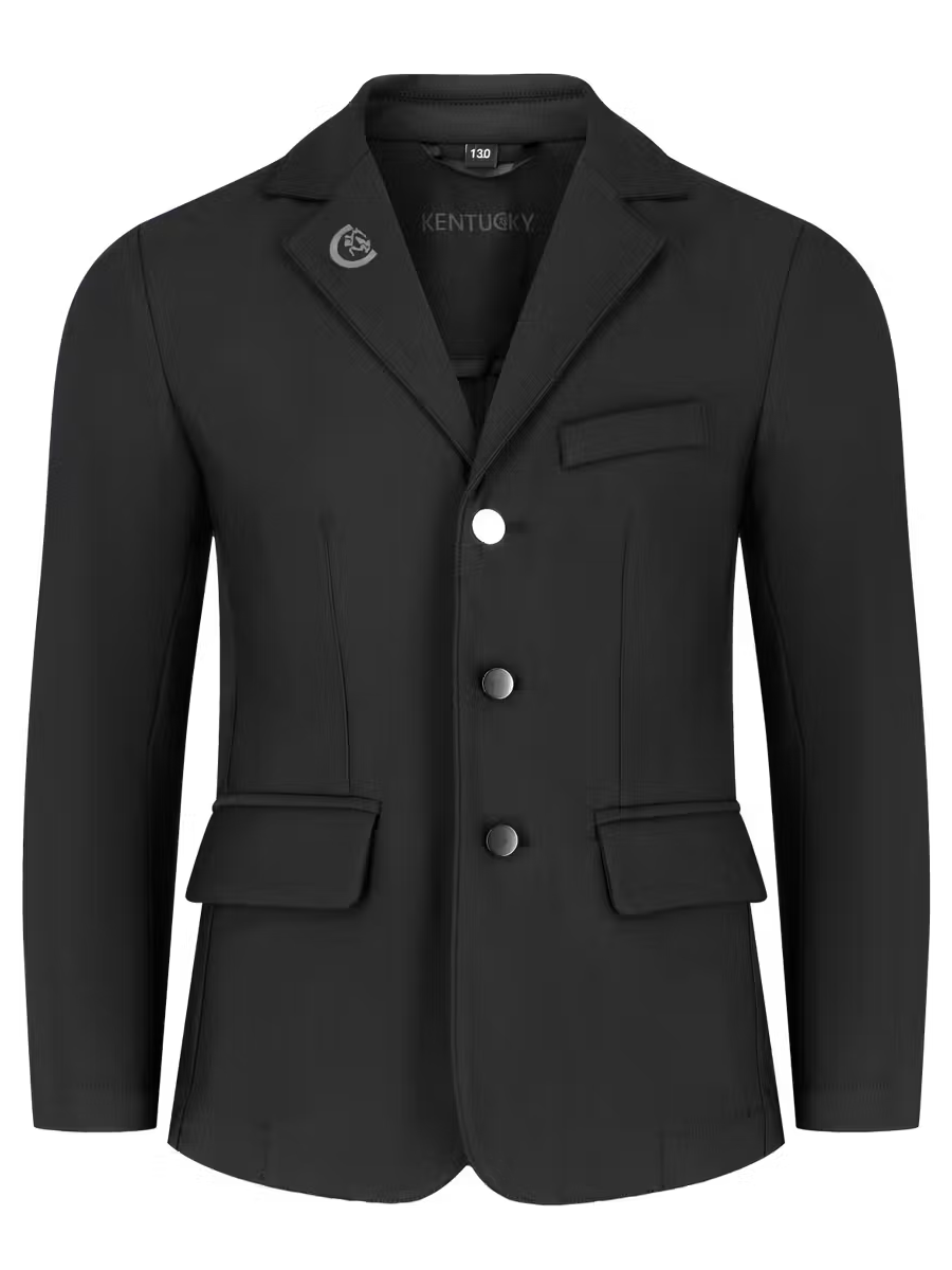 Kentucky Jungen Turnierjacket Lyon – ein sportlich-elegantes Kinder Turnierjacket für Jungen, das Komfort, Funktionalität und einen modernen Look im Reitsport vereint. Das atmungsaktive und elastische Material sorgt für optimale Bewegungsfreiheit und ein angenehmes Tragegefühl während langer Turniertage.