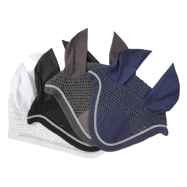 Ear Bonnet with Rhinestones: a beautifully designed ear bonnet with gorgeous detailing. Handmade cotton ear bonnet with one cord of decorative diamantes that will add some subtle and stylish bling to your horse. The ear bonnet has a perfect fit thanks to the special elastic material on the ears.