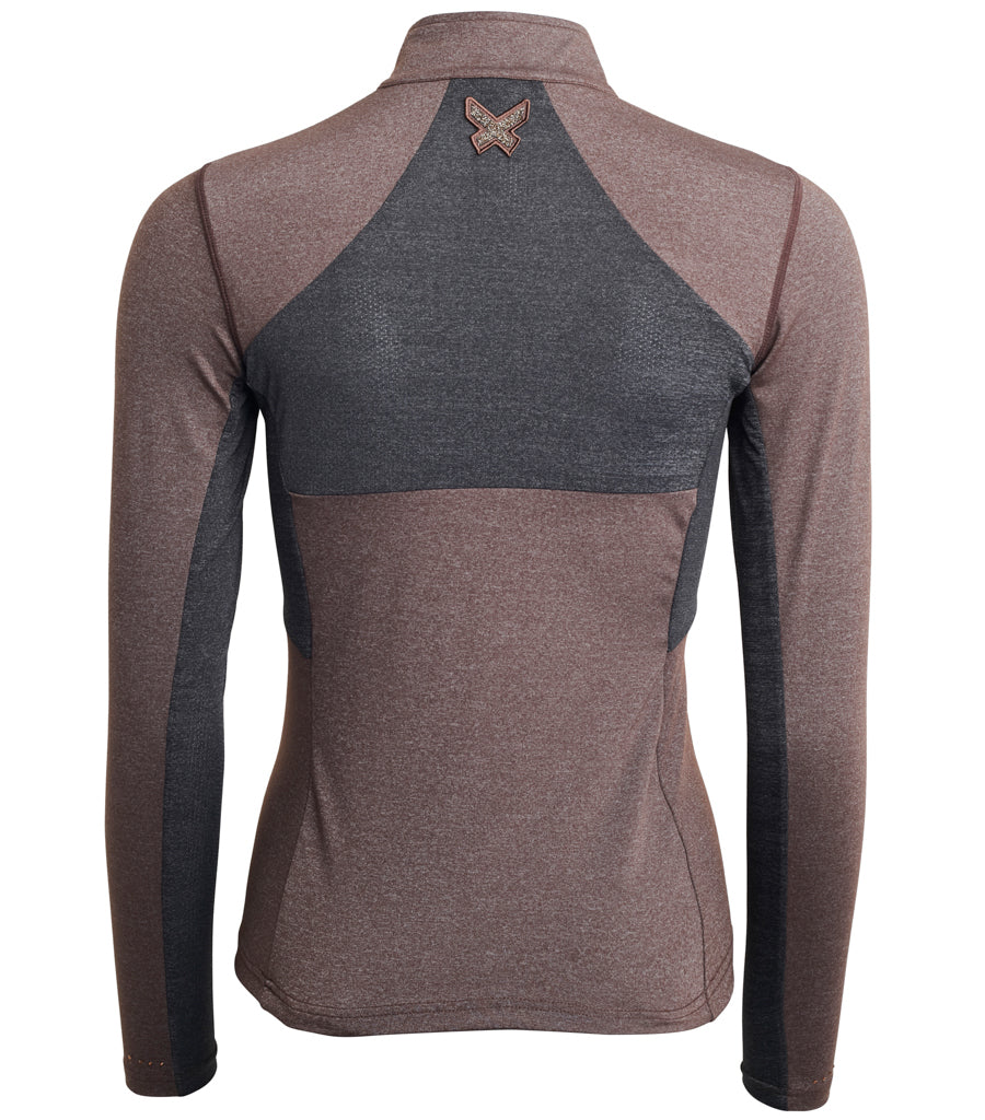 Kingsland Ladies Long Sleeve Base Layer KLAleece - if you're searching for the perfect equestrian training shirt, this is the one you need. Offering sporty comfort and sophisticated style, this base layer truly has it all! Made from soft melange fabric that is both quick drying and moisture wicking, the shirt features a 1/2 zip front for added comfort when riding. Mesh panels on the sides and under the sleeves add extra ventilation, whilst the crystal detailing on the sleeve clasps combine perfectly with the logo on the front and back to finish the design perfectly!