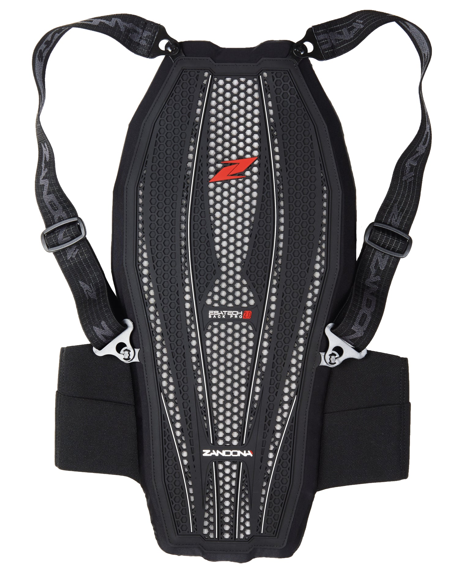 "Esatech Back Pro Equitation" is a 100% made in Italy back protector made by precious materials and by special textiles like S.R.T. (Sweat Removing Textile - very transpiring 3D textile which transfers sweat to the outside), studied to protect the back zone from collisions while offering a good lumbar support. The external plate is an hexagonal nitrile anti-shock structure (Esatech System), particularly formulated to absorb high impact energies and designed to dissipate the output energy over the whole protector surface. The internal padding is composed by E.V.C. (Evoluted Viscoelastic Cells), innovative waterproof anti-shock material with high performance\weight\thickness rate, completely perforated to increase perspiration from the contact area to the outside. The waist closing have a double elastic regulation system, excellent against back-aches and comfortable. The back protector is comfortable because it follows and satisfies the natural forward movement of the spinal column and reaches Lev.2 performance (4,6 kN average result) according to the EN1621-2\03 normative while offering the best comfort.