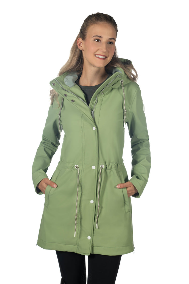 HKM Abrigo de Montar Ohio – este abrigo impermeable ofrece una protección fiable contra la lluvia, mientras que el forro cálido y suave de felpa garantiza una agradable sensación de abrigo. Transpirable y cortaviento, te mantiene cómoda incluso en días tormentosos. La cintura ajustable individualmente y las cremalleras de ventilación laterales permiten un ajuste perfecto y una mejor circulación del aire. La capucha no es desmontable, pero puede fijarse con un botón de presión para mayor comodidad. La cremallera frontal de doble sentido y los bolsillos con cremallera repelentes al agua aportan un extra de funcionalidad.