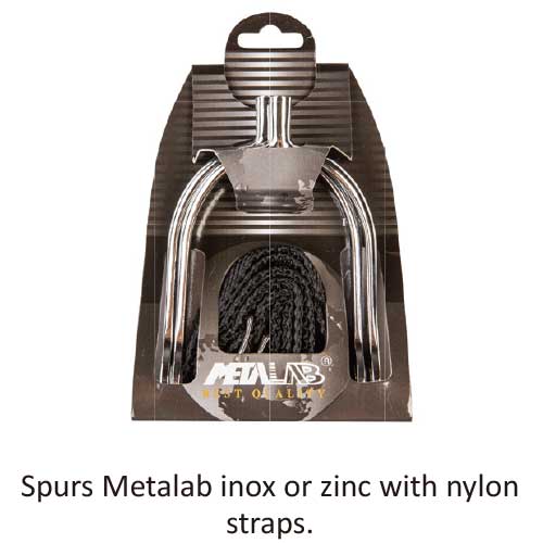 Zink spurs with round neck - great every day spurs made of zinc with a round head. These spurs come in pairs and with the fitting nylon spur straps. The slight angled strap opening ensures that the spurs stay in place, without creating friction or pressure points on your feet.