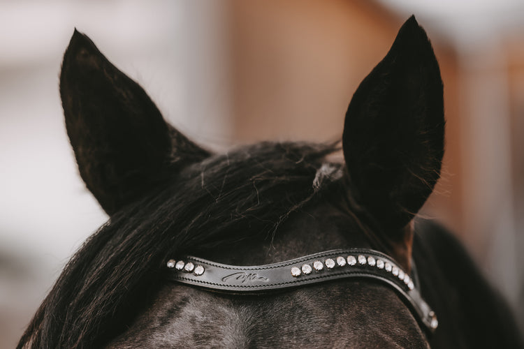 Dy'on V-Shaped Half Swarowski Browband - add some Swarowski Sparkles to your new Dy'on Collection bridles with this beautiful sparkling browband. A perfect match to the Dressage Collection bridles or any bridle with silver fittings.
