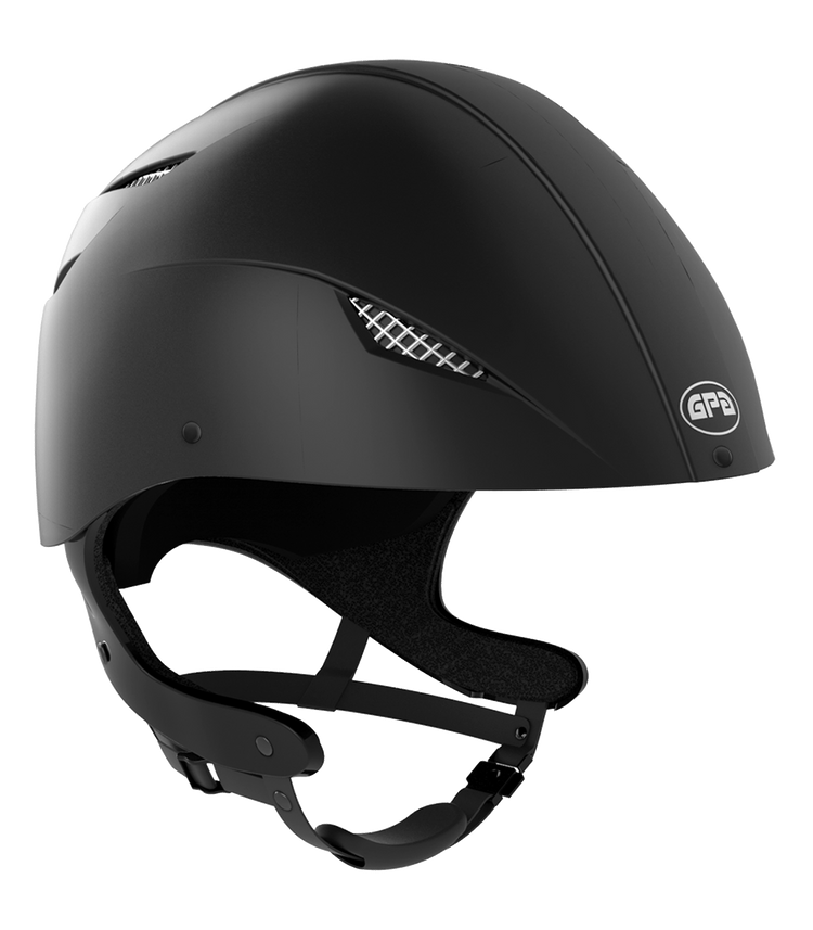 La correa TLS para la barbilla es la marca registrada de la nueva colección de cascos de montar GPA.