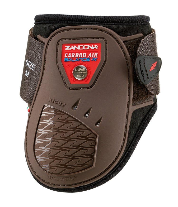 Zandona Carbon Air Balance Junior Fetlock Boots - these 100% made in Italy fetlock boots offer the same benefits and protection as the original Carbon Air Balance Fetlock Boots however, they are the Junior version that offer compliance with the international regulations for young horse competitions. The boots are equipped with both a magnetic device and carbon fibre elements which offer many different benefits for your horse.