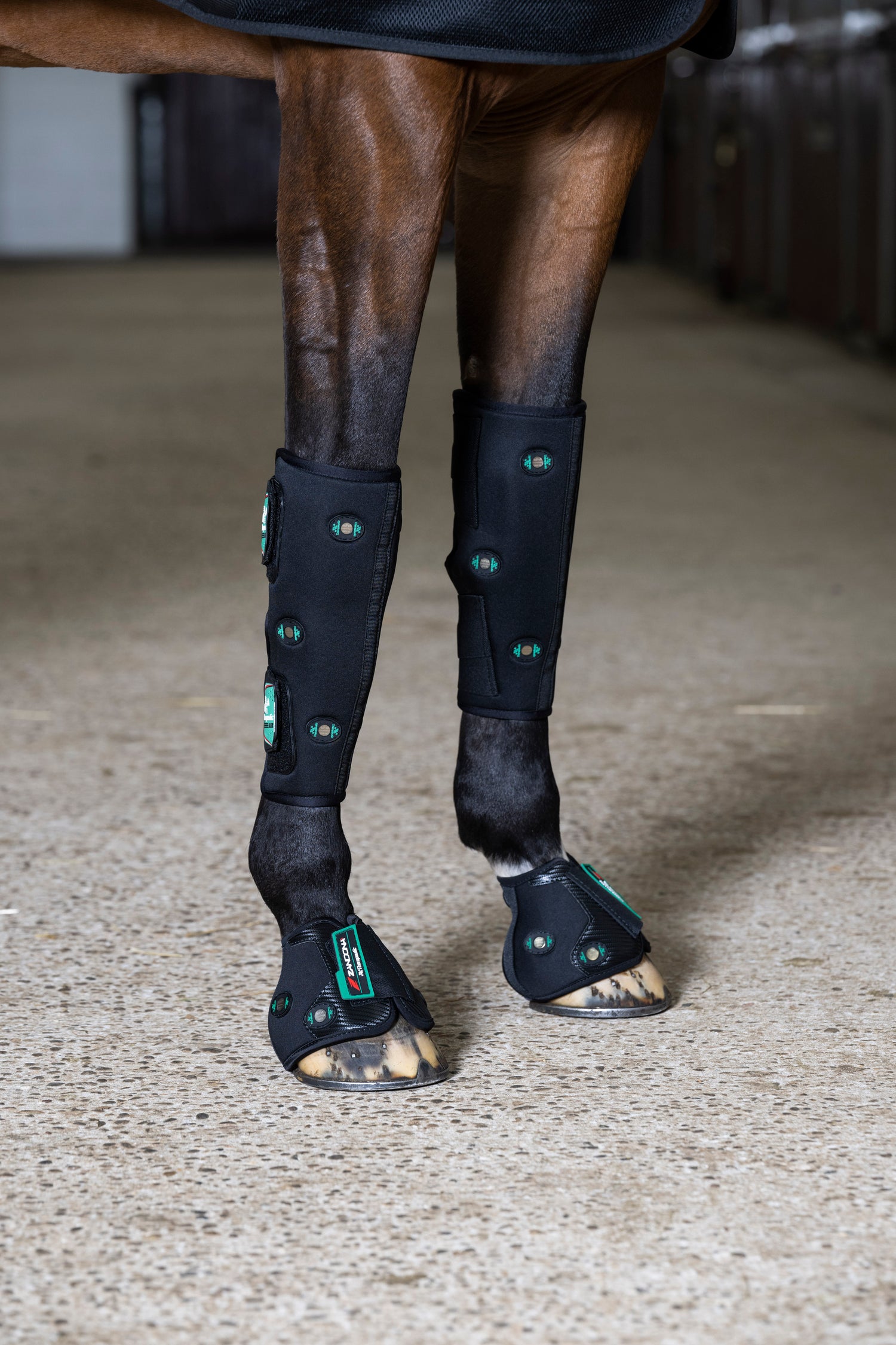 Zandona Terapéutica Air Bota de Rodilla - un avance innovador en el cuidado terapéutico para caballos, estas botas magnéticas para rodillas proporcionan apoyo terapéutico natural para los equinos. Cada bota está equipada con 6 dispositivos magnéticos para aprovechar los poderosos beneficios de la terapia magnética.
