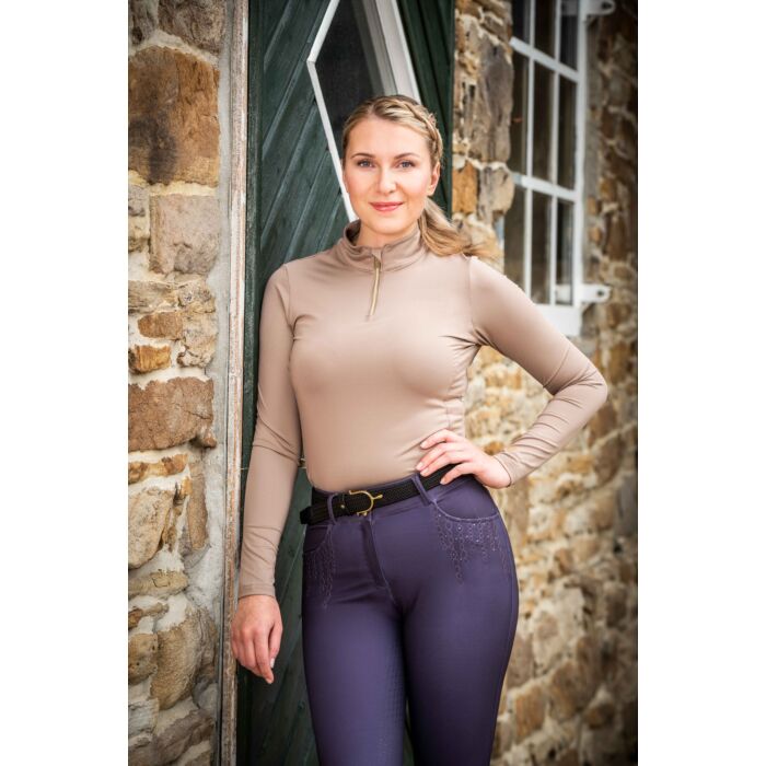 HKM Women´s Riding Breeches Lavender Bay with Full Silicone Seat - these stylish and practical riding breeches with full grip match perfectly with the other products of the HKM -Lavender Bay- collection. The breathable material prevents you from massively sweating and keeps you dry. Furthermore, the elastic fabric guarantees a perfect and comfortable fitting, while the silicone seat keeps you save in the saddle. In the pockets on the front and back you can store small essentials. The crystal details on these breeches create an elegant optic.