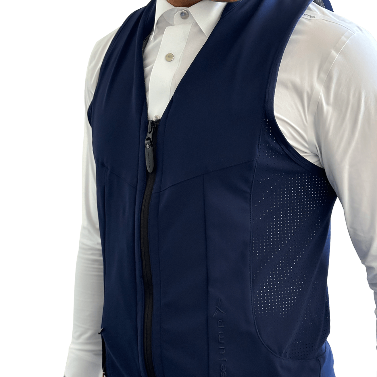 Freejump Chaleco Airbag Azul - un chaleco ecuestre que ofrece una seguridad inigualable sin restringir el movimiento ni la comodidad para cualquier jinete. Altamente transpirable, ligero y con un diseño atractivo, este chaleco está pensado para los ecuestres que buscan protección extra al montar.