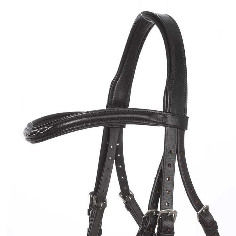Kavalkade Bridle Diandro - The Diandro Mexican Snaffle is made of soft comfort leather and nestles comfortably against the horse's head. The headpiece is adjustable on both sides, clearly anatomically cut and softly padded. Contrast stitching and decorative embroidery give a sporty look. The nose pad is replaceable and made of genuine medical lambskin. The browband is slightly curved.