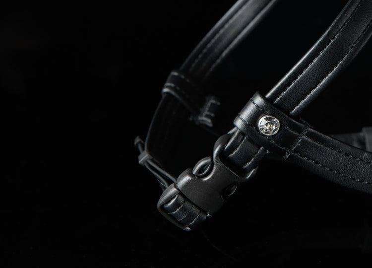 - Cristales Swarovski en la correa de la barbilla