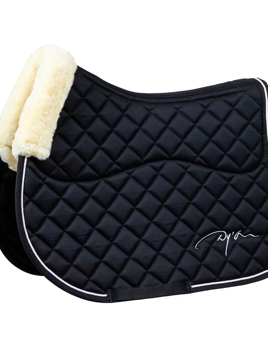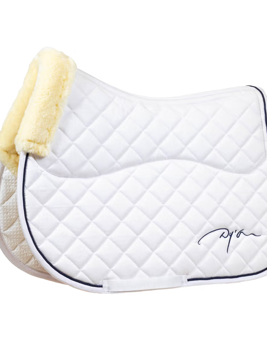 Dy& Sheepskin Saddle pad for jumping White saddle blanket with sheepskin on underside White Dy& Dy& White jumping saddle blanket with sheepskin underside