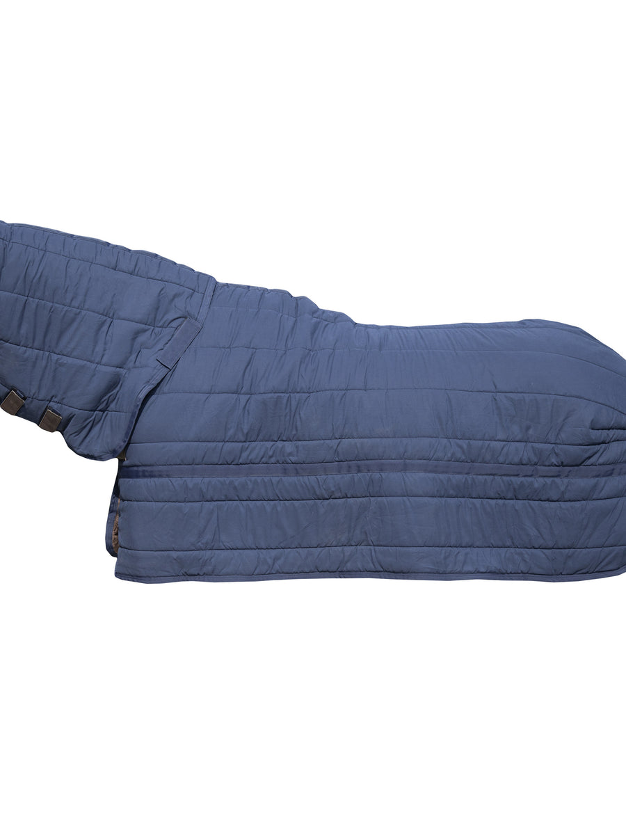 The outside of the under rug skin-friendly is made from polyester microfiber. The yarn in this fabric was sanded to create a cotton touch. The lining of the under rug is our popular artificial rabbit skin. The artificial rabbit skin is very pleasant for your horse to wear, particularly for horses with sensitive skin or clipped horses. The lining creates an extra isolating layer to hold your horse’s body warmth and creates a shiny effect on the horse’s coat. The 150g fiber filling has the same advantages as down, but it does, unlike down, not absorb any smell.