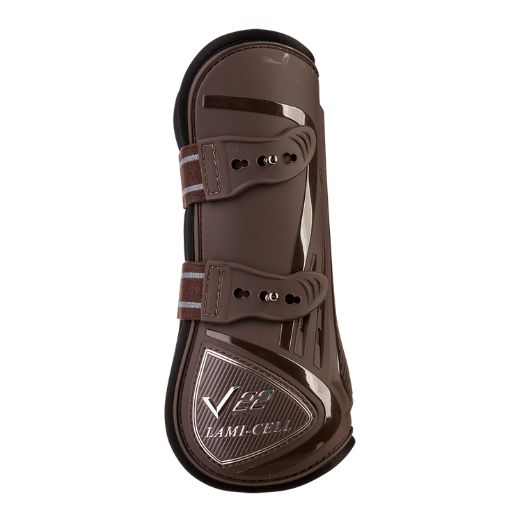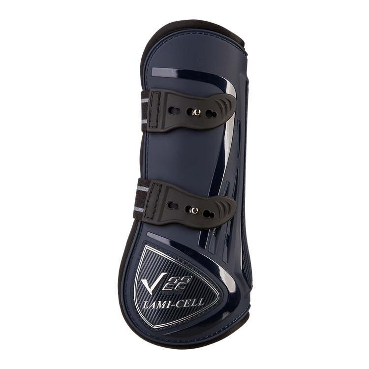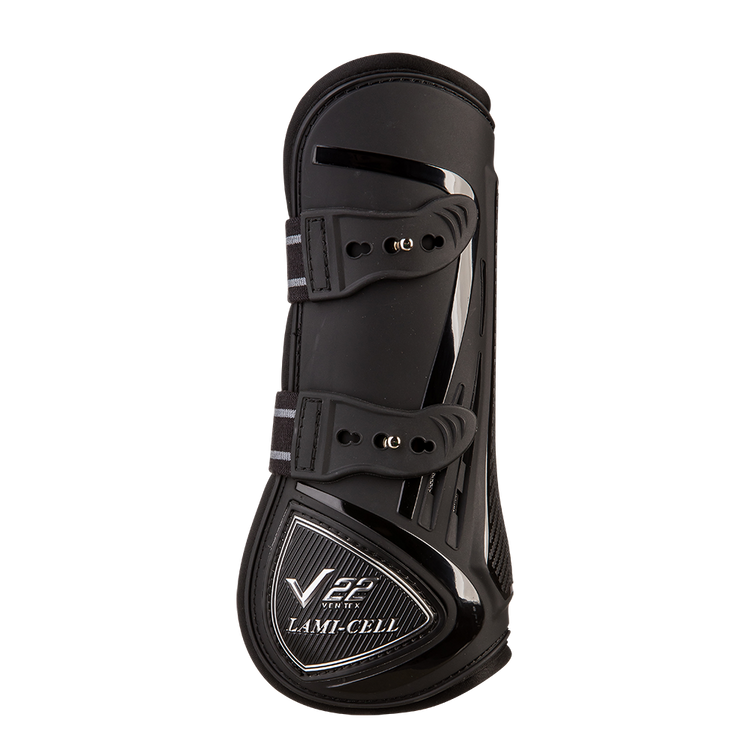Lami-Cell V22 Carbon Tendon Boots - the new generation of tendon boots has arrived. Designed and tested by the Lami-Cell Team, you can be sure that these boots live up to their exoectations. The durable and well protecting outer shell is lined with the V22 Ventex Neoprene, which is extremely breathable and the only neoprene that is able to absorb moisture and to dissipate heat. Therefore accumulated moisture and body heat is transported through the V22 and air inlets to the outside which results in much cooler and drier legs. Closed by a belt closure with studs system.