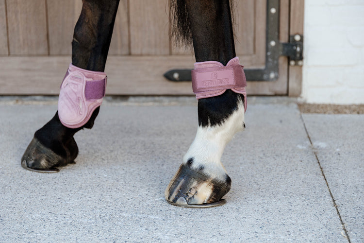 Kentucky Young Horse Fetlock Boots Velvet - now available in two new colors: old rose and emerald! Get the hind boots that match the saddle pads and ear bonnets from Kentucky!