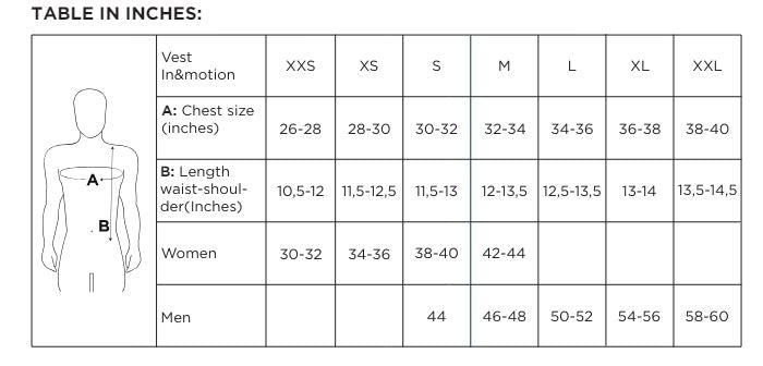 Chest (cm) | 72 / 78 | 78 / 84 | 84 / 90 | 90 / 96 | 96 / 102 | 102 / 108 |
