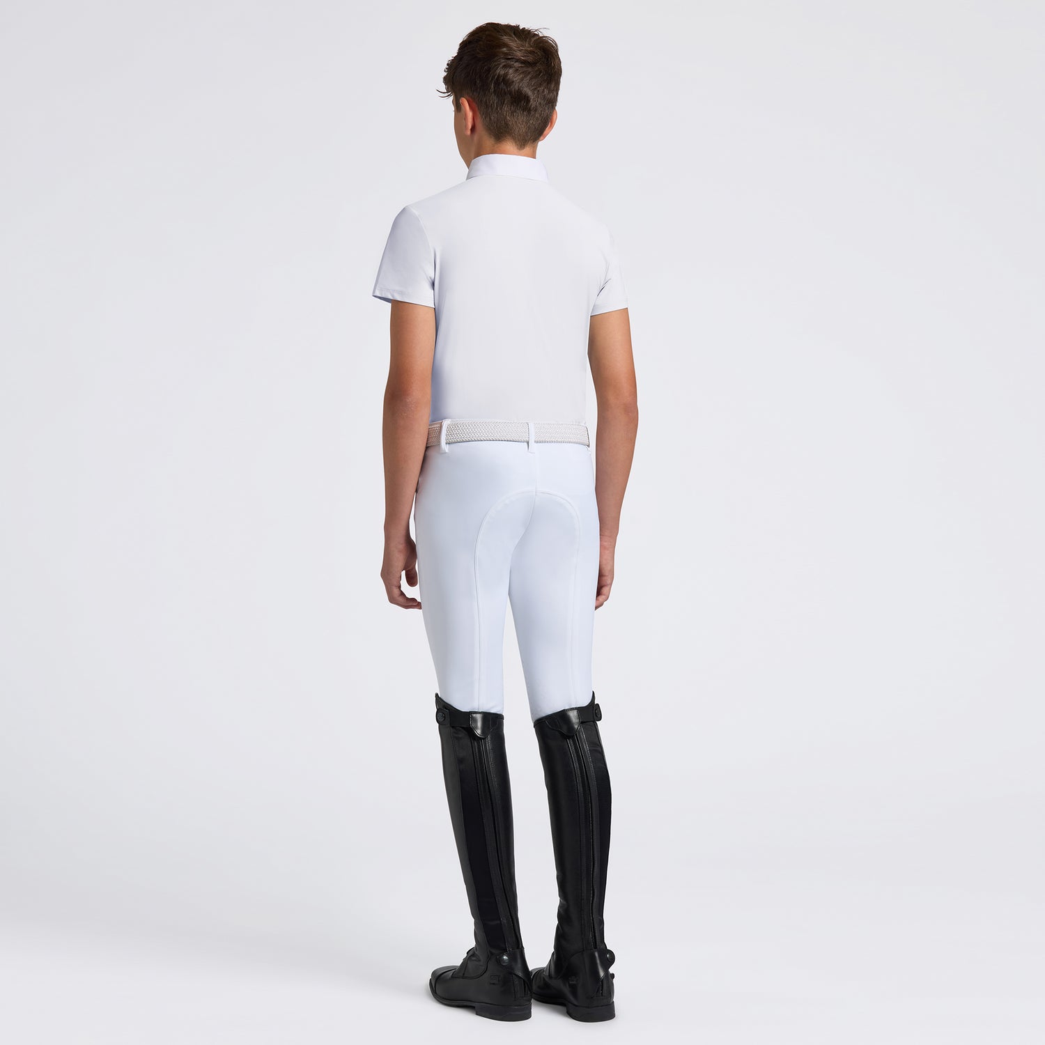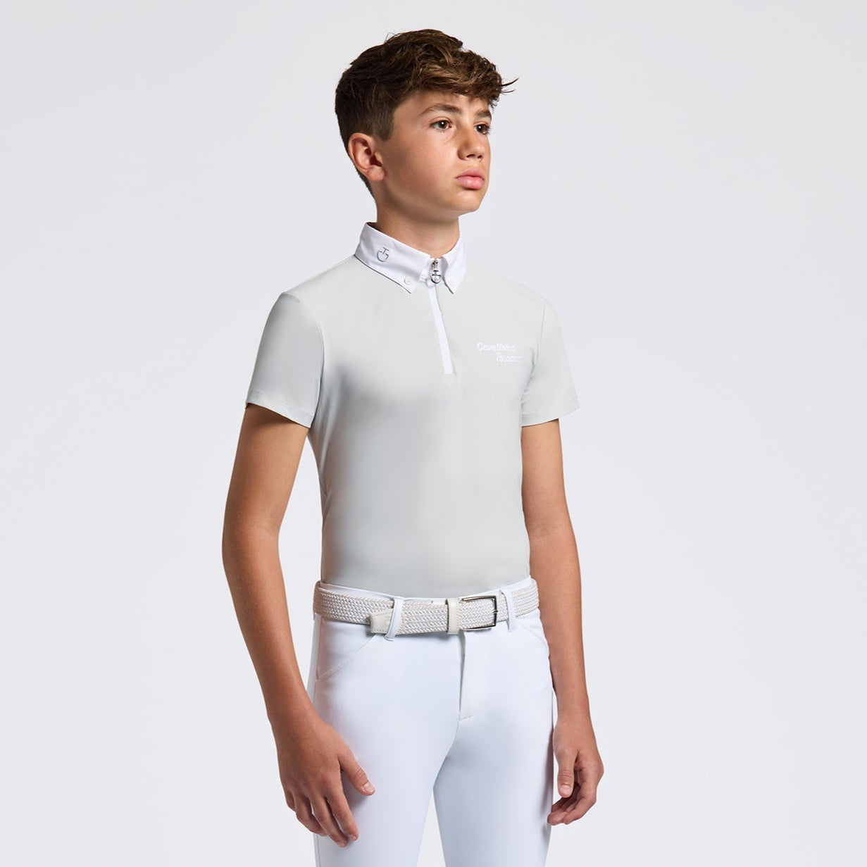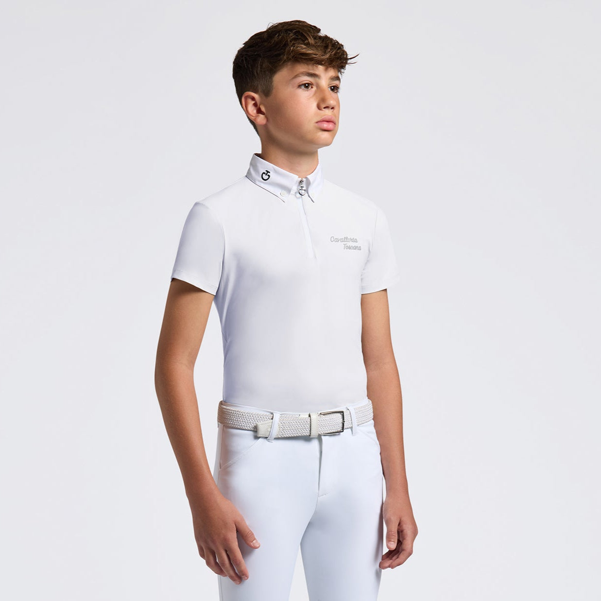 Cavalleria Toscana Boys Short Sleeve Zip Competition Shirt - this sporty boys show shirt is perfect for the summer months. The high quality fabric offers complete freedom of movement as well as remaining breathable to ensure total comfort when competing. Embroidered Cavalleria Toscana text on the chest and the CT logo on the collar add to this shirts great look. Ideal for any discipline, its a shirt your young equestrian will love competing in.