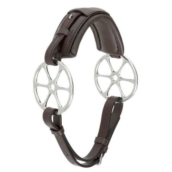 The Stübben Steeltec flower ring is a bitless bridle that can be individually adjusted due to its numerous buckling possibilities. Depending on the position at which the reins are attached, the effect is sharp or less sharp. In this way, the leverage can be adapted to different types of horses. The side pieces are made of stainless steel, while the straps are made of soft leather. The high-quality materials allow for a long service life. The anatomically shaped noseband is lined with nylon so that the horse's sensitive nose is protected.