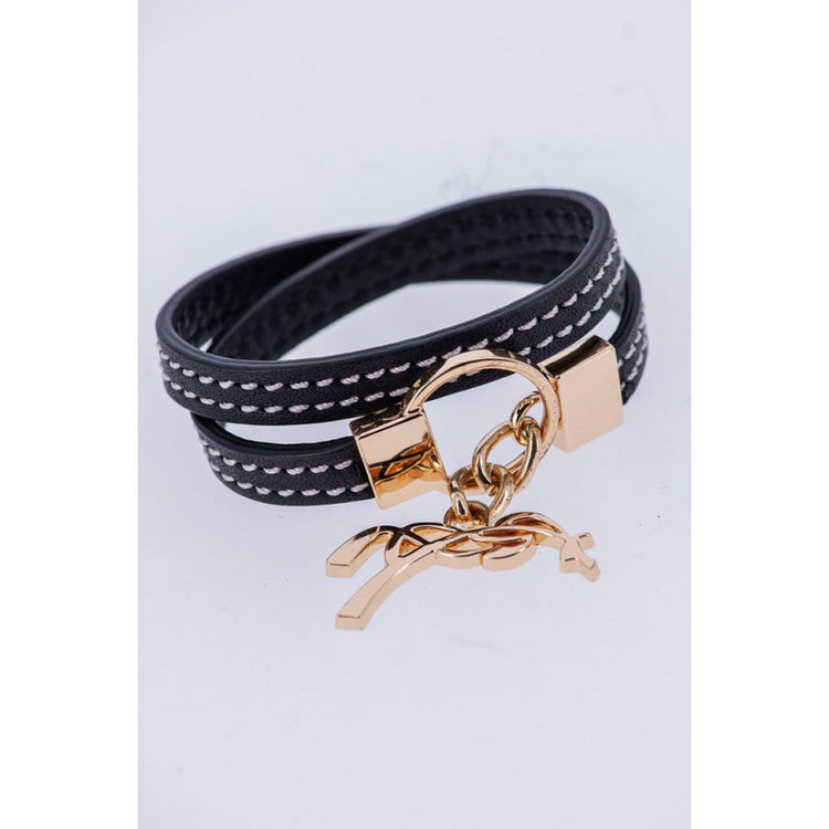 Penelope Signature Bracelet - elegant leather bracelet with Penelope logo charm and Penelope's signature white saddle stitch. It's a beautiful piece of jewellery to show your equestrian passion. The double loop thin strap is very feminine and stylish. The metal buckle with the Penelope logo pendent gives it a very pretty look and makes it very easy to put on and off.