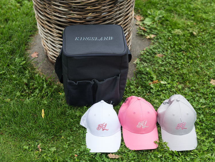 Kingsland KLchabela Ladies' Baseball Cap - cute and sporty baseball cap for women with big KL logo embroidery in contrasting color and crystals on the front, and Kingsland lettering on the back. The pink version has white Kingsland logo embroidery and the grey one with pink logo. Adjustable strap with Velcro on the back.