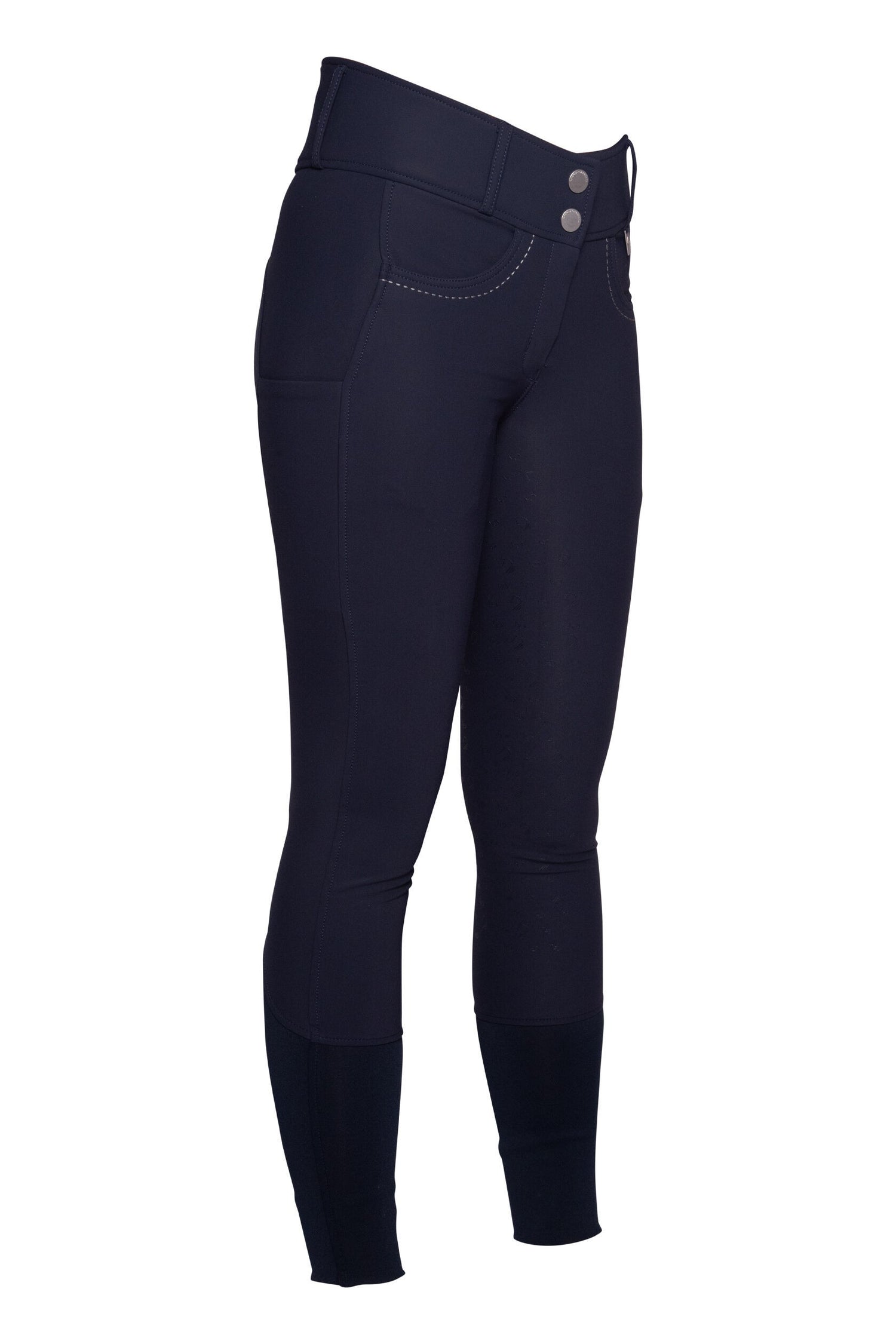 In the saddle, the non-slip silicone knee patch provides excellent grip without restricting freedom of movement. A lateral mobile phone pocket offers a convenient place to store your smartphone or small essentials without interfering while riding. Decorative stitching gives the breeches a modern, sporty look that pairs perfectly with a variety of outfits.