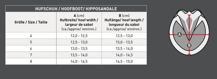Waldhausen Hoof Boots - these all round hoof boots are perfect for barefoot horses. Easy to put on, these hoof boots protect the hoof and the sole of the hoof from shocks when riding. Perfect fit and easy to put on, the boots attach thanks to a double Velcro fastener. The hoof boot is opened at the back, the side parts are folded to the side so that the hoof boot can be easily pulled over the hoof and then closed. The soft padding on the edge prevents chafing on the pasterns to ensure your horses comfort. The Waldhausen front shield provides additional protection against wear and impact. A must have for barefoot horses with sensitive hooves.