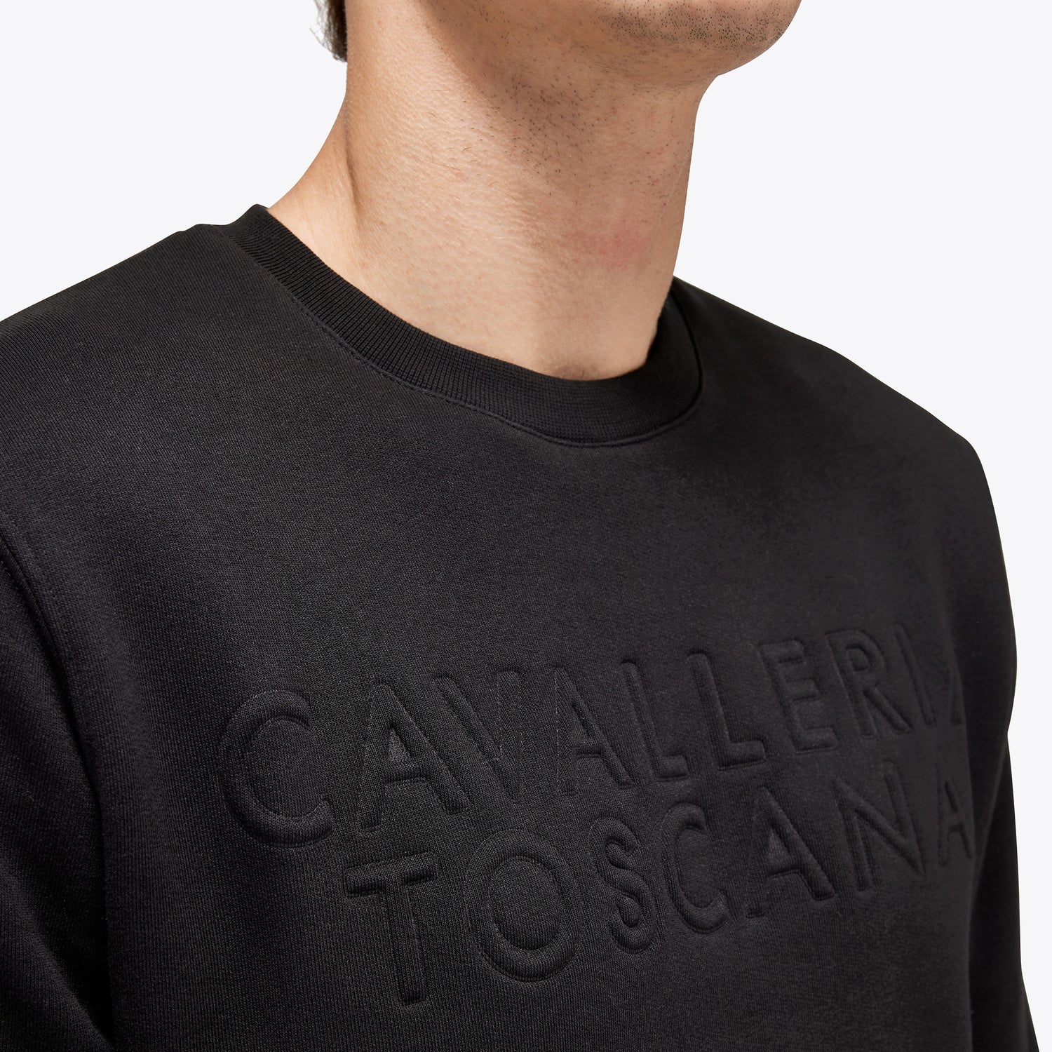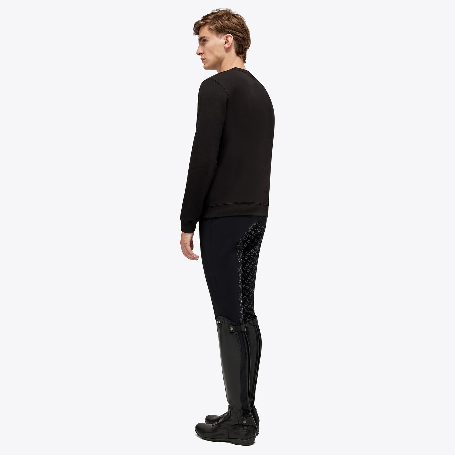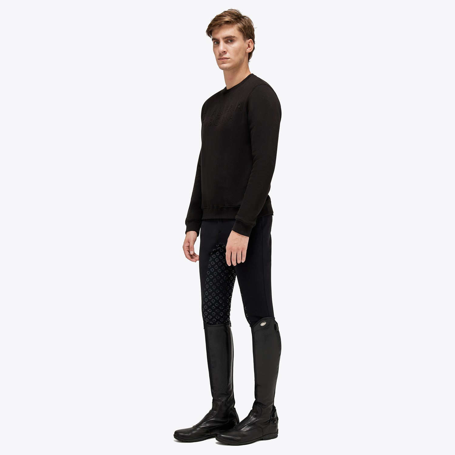 Cavalleria Toscana Men's Crewneck Sweater with Raised Logo - the perfect pullover for cooler mornings in the saddle. Featuring a maxi Cavalleria Toscana raised logo on the front and ribbed edging with contrasting piping, the sweater is the perfect combination of casual looks and sporty comfort. An essential piece for all male equestrians, it is made from high quality cotton which is breathable and quick drying.