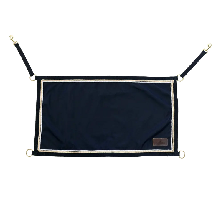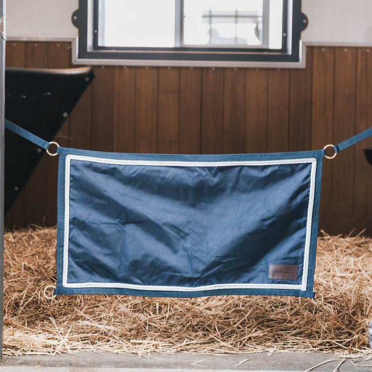 Kentucky Horsewear Stable Guard Classic - allow your horse to put their head outside the stable and relax when at shows or home with this brilliant stable door guard from Kentucky Horsewear. The door guard easily attaches to the stable with added rings at the bottom for a more secure attachment. A perfect match to the Stable curtains from the Classic collection, you can easily have your horses name or stable logo embroidered to add a personal touch.