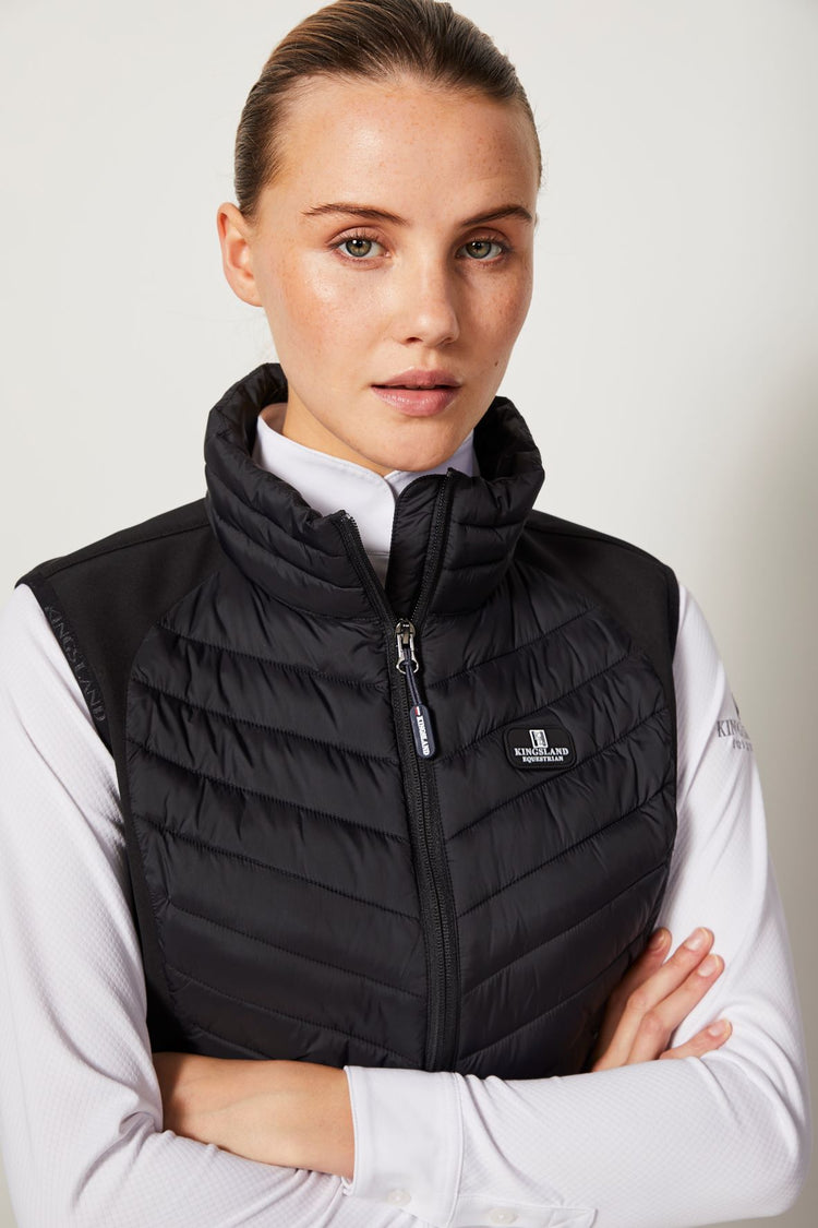 Kingsland Classic Women´s Hybrid Bodywarmer - The classic women’s hybrid body warmer offers superior form and function. Designed with a flattering feminine aesthetic, utilizing sewing lines and tonal stitching. With a combination of softshell and padded panels that allow for warmth and flexibility, this body warmer is ideal for active outdoor use. Made from nylon, which is renowned for its ability to stand up to tough wear and tear.