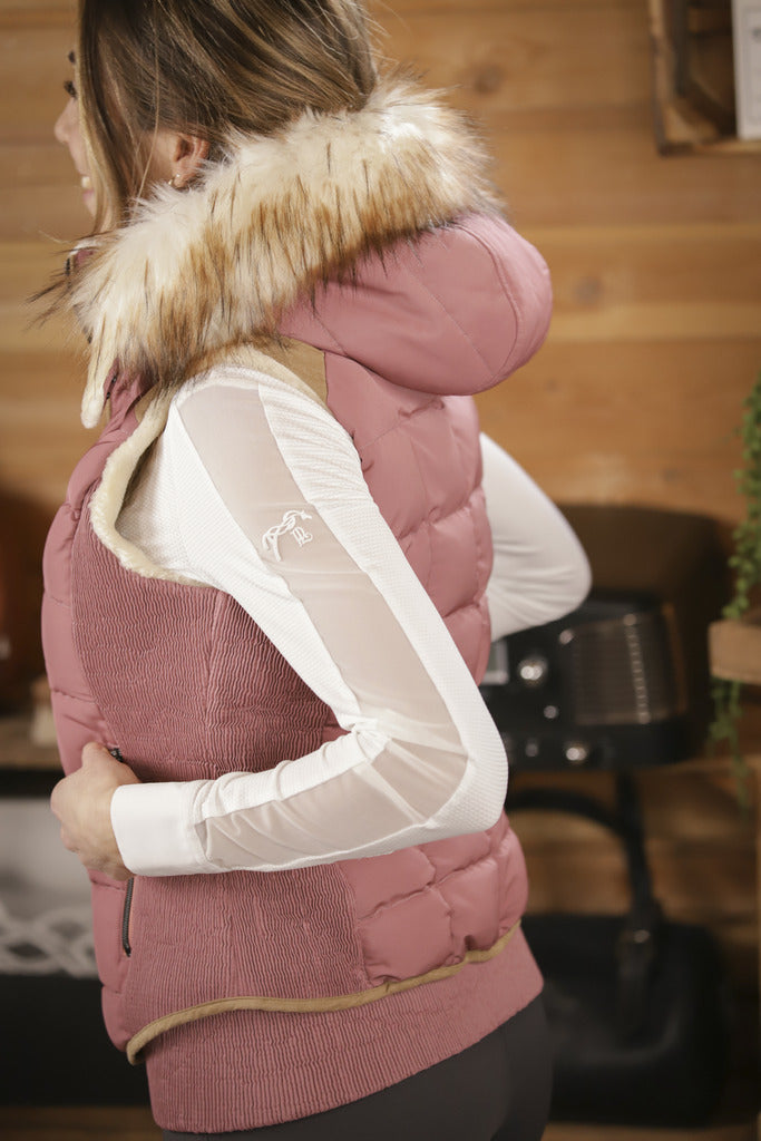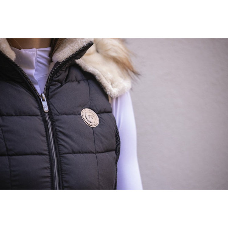 Penelope New Roge Vest - a signature piece from Penelope collection. This new version Roger Vest is even prettier and more comfortable. It's lined with ultra soft and warm fur-like fleece. You'll for sure fall in love with the vest once you feel the lining. The center zip is now in the same tone as the vest. The fabric has a slight glitter effect. It also features two zipped front pockets. The faux fur on the hood is removable. The waistband and large side panels are elastic to ensure absolute freedom of movement.