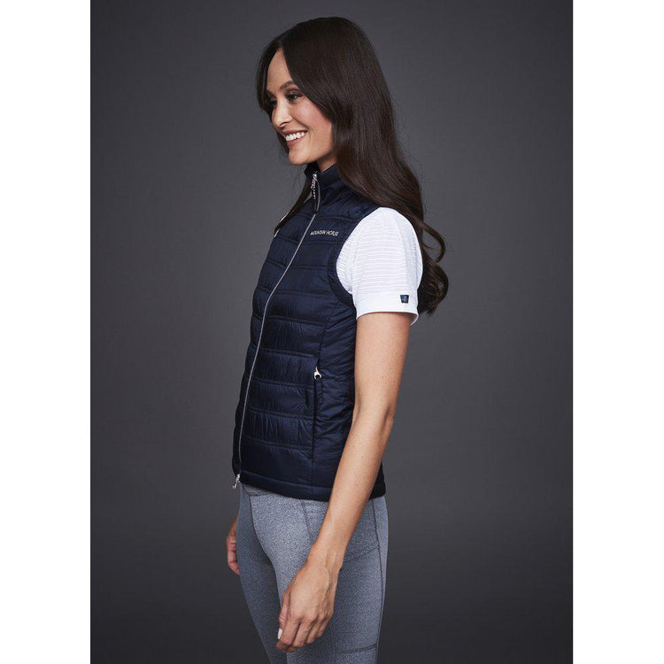 Mountain Horse Star Vest - All year round unisex vest in a durable water repellent and wind proof outer fabric. Isulated with a down like synthetic padding. Design elements such as the logo print on the back on the chest add a great eye catcher. The 2-way zipper allows free movement and makes it perfect to wear in the saddle. So, the vest gives you all: it keeps you warm, freedom of movement and good looks. What more do you want?