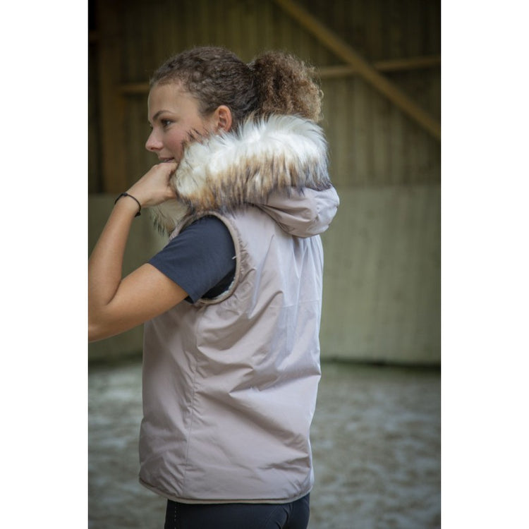The sleeveless inner jacket has got a warm faux-fur edging along the hood. It is reversible one side features a very soft teddy fabric while the other side shows off with a sleeker material and a subtle shine.
