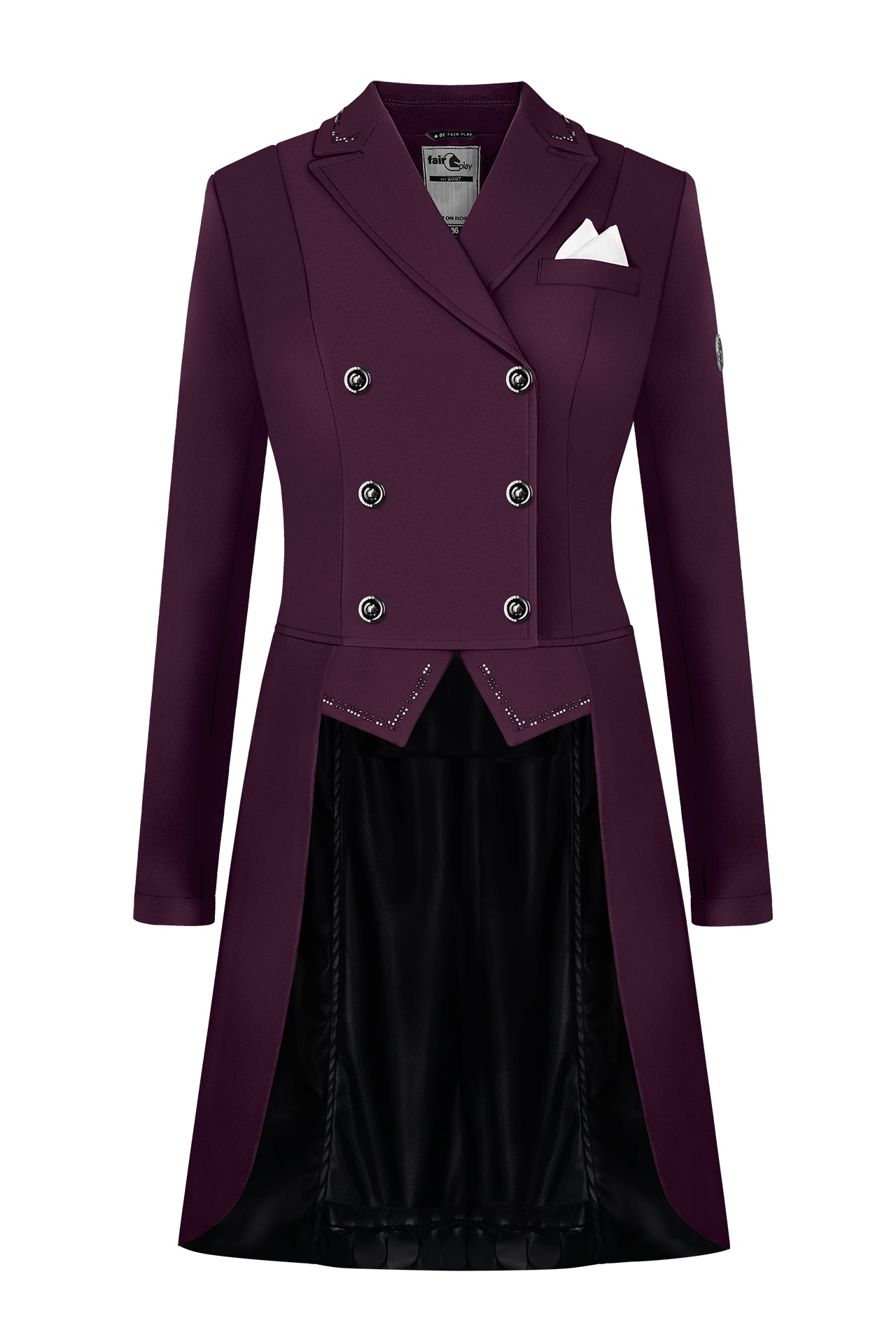 Fair Play Dressage Tail Coat FP Nadine Royal Berry - this incredibly elegant set of high quality dressage tails will have all heads turning! With it's striking details, tailored fit and clever design, this show jacket ensures a truly glamorous look when out competing. Featuring delicate crystal detailing on the collar, points and back, as well as a satin pocket square, you're certain to feel confident and at your best when wearing this shad belly.