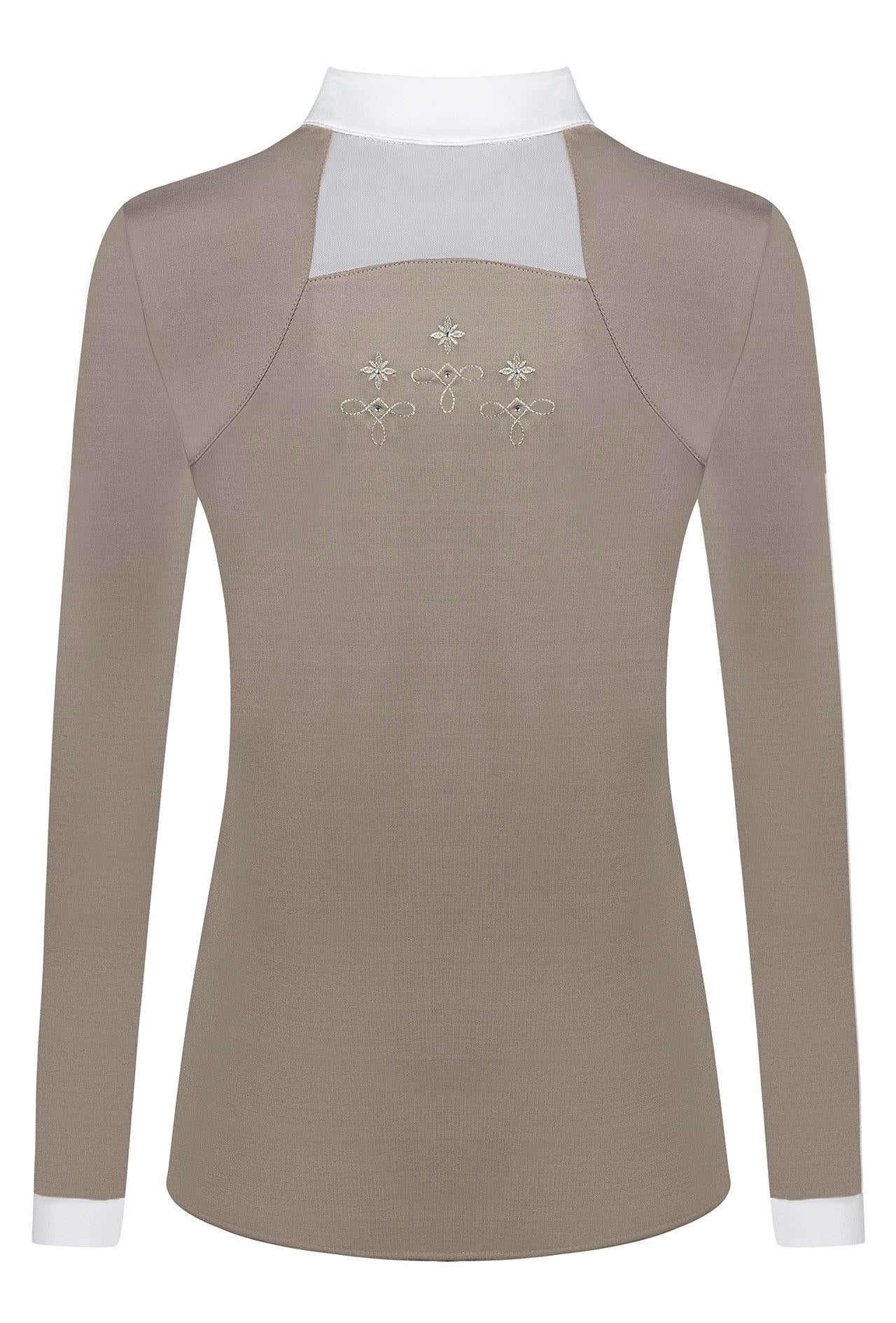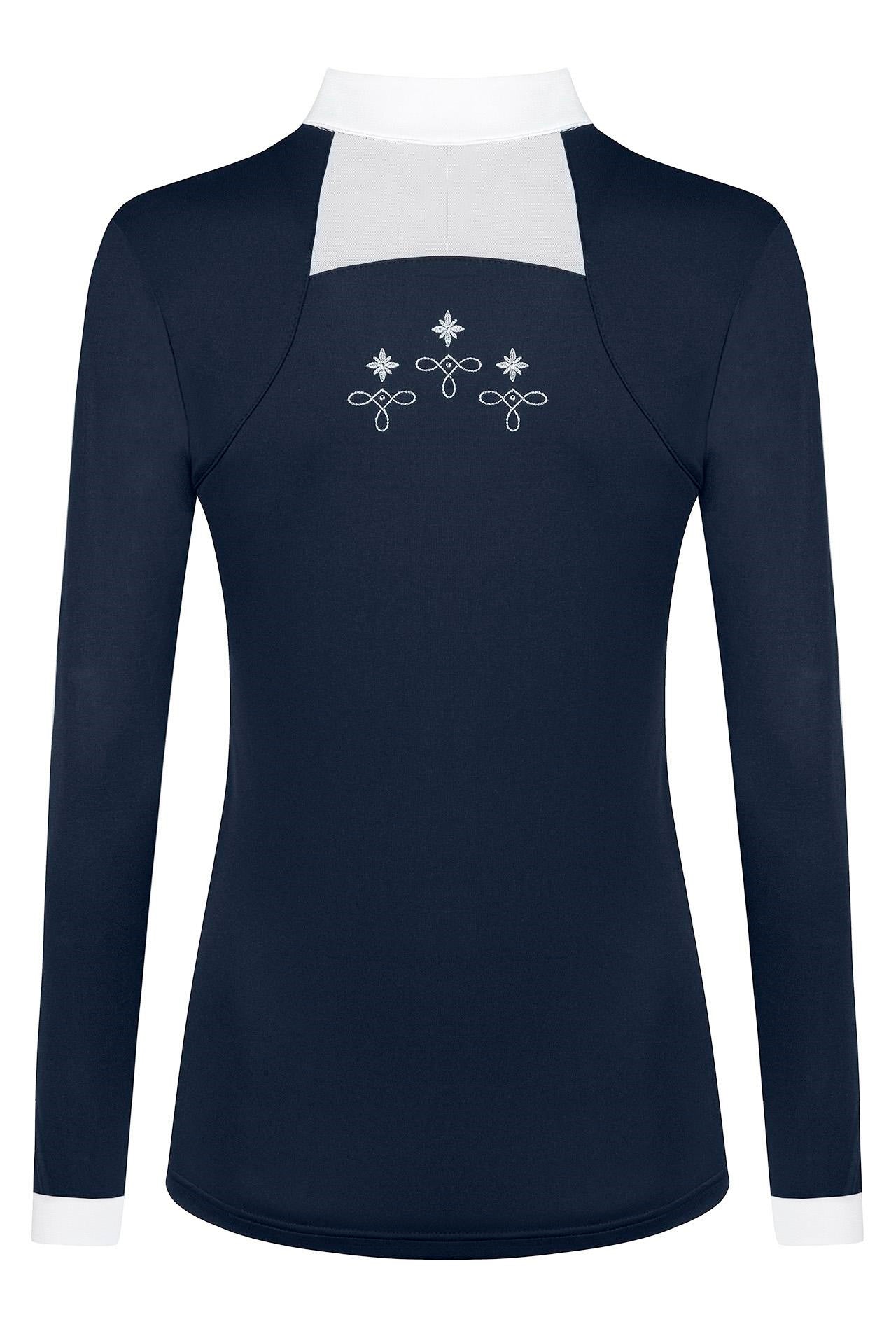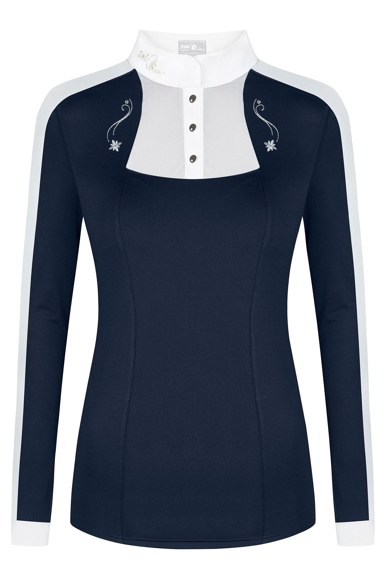 Long Sleeve Competition Shirt Lorella - Fair Play's Lorella is THE sporty and elegant competition blouse you have been waiting for. It gives you biggest wearing comfort as it is made from technical fabric that wicks away moisture and is highly breathable. Furthermore, the fabric is very elastic so it gives you loads of moving freedom without losing the looks and perfect fit. Fair Play designed it to stand out, Lorella has decorative embroidery on different parts of the shirt and mesh inserts that look great but also ensure perfect air circulation. Combining looks with sporty functionality - what more do you want?
