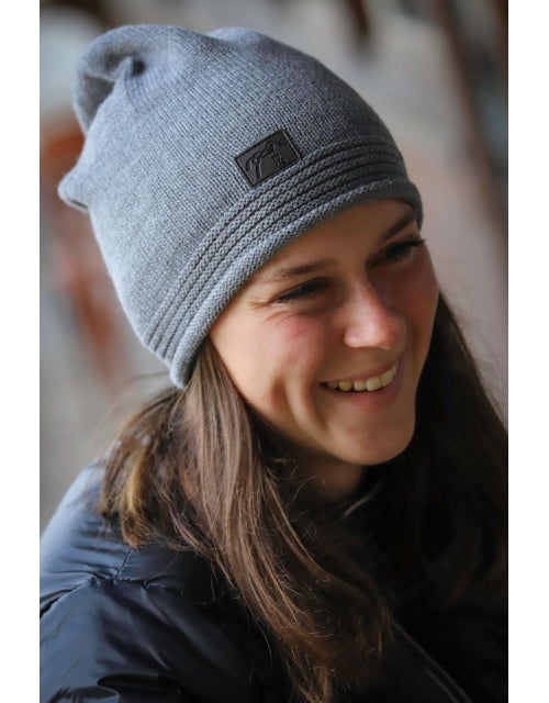 Penelope Hat Nouki - Among the four hats from Collections Pénélope, here is Nouki. A monochrome hat, with a thin stitch grey or cream. A rectangular fake leather patch is sewed on the front on the left side with our Pénélope logo on it. This detail gives Nouki an equestrian touch. With its look, you can wear Nouki at the stables, or in your daily life.