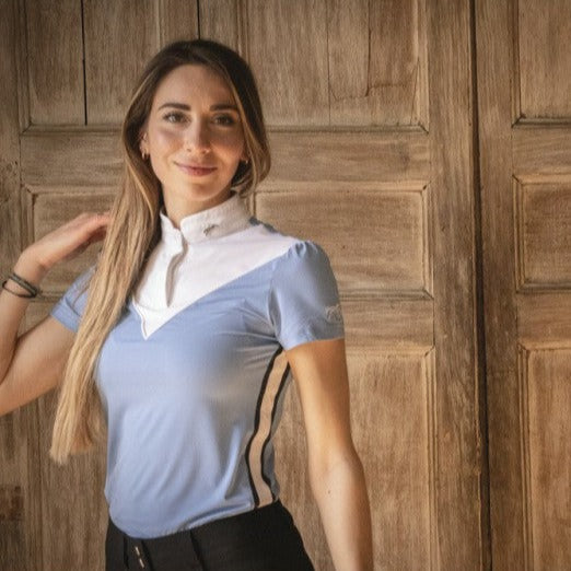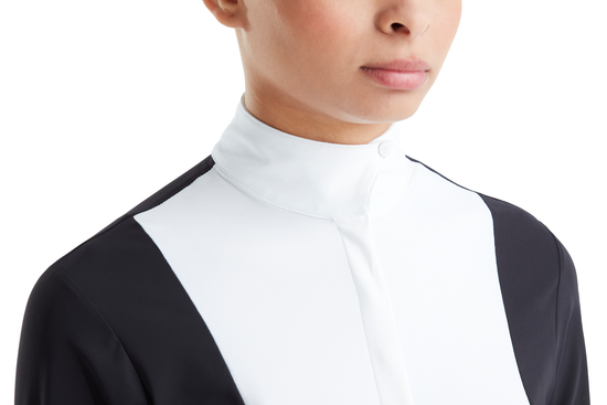 Large selection of show shirts for every equestrian woman to wear during horse shows and competitions. Show shirts may have long or short sleeves. They must all have white collars and for long sleeve show shirts, they must have white cuffs . In hot weather, riders may be allowed to compete without jackets at the judges’ discretion, wearing shirts with either long or short-sleeves.