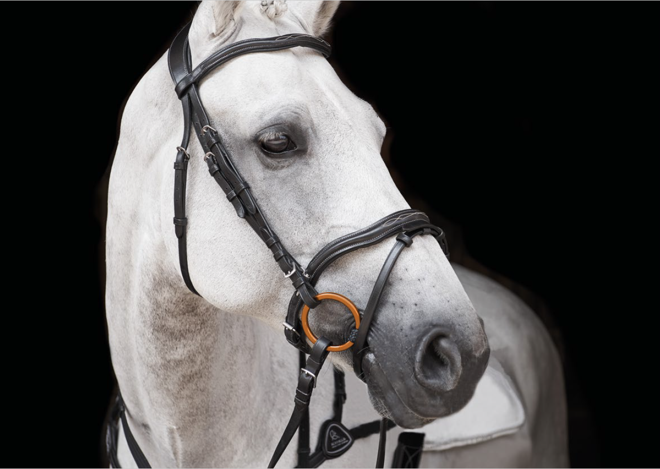 Acavallo Jumpe AluPro Bit - the Acavallo “Jumpe” AluPro Bit is made of a certified, 100% anti fray twisted fiber called “Jumpe” and fitted with two anodised aluminium rings, which are available in various gloss colours and have a thickness of 7 mm. The special aluminium alloy is lightweight, durable, avoids corrosion and guarantees for a long product life. The “Jumpe” material is an anti-cut, non-fraying twisted fiber, highly resistant to UV rays, does not absorb water (water repellent) and is easy to clean. In comparison to already known plastic or synthetic materials, the main benefit of “Jumpe”is that it is almost indestructible by biting or chewing of the horse which makes it extremely safe and mouth-friendly. The weight of this new bit amounts to approx. 65 g. The outer diameter of its rings is 80 mm, a measure which proved to be highly comfortable for the horse in this configuration.