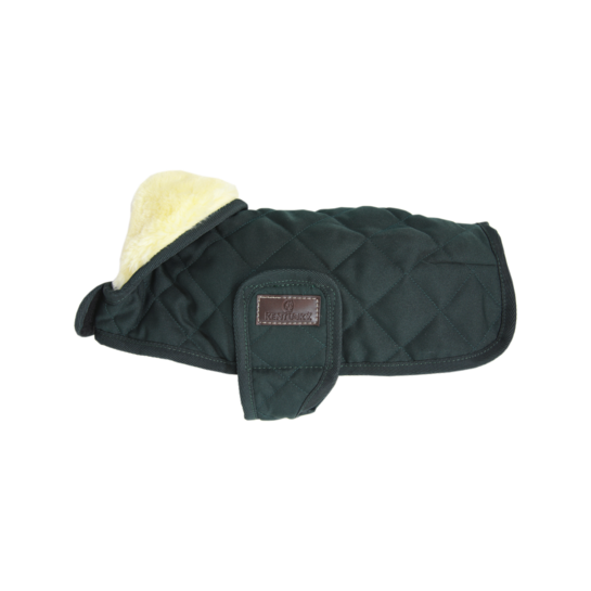 This outstanding Dog Coat was made to match the line of horse rugs from Kentucky Horsewear. It has a filling of 160g and features Kentucky's signature artificial rabbit skin lining for extra comfort, which creates tiny air pockets that trap and retain the body heat of the dog. The soft lining also polishes the dog’s coat and the artificial sheepskin on the neck offers comfort and warmth. This hood can be folded open over the neck for extra cover.